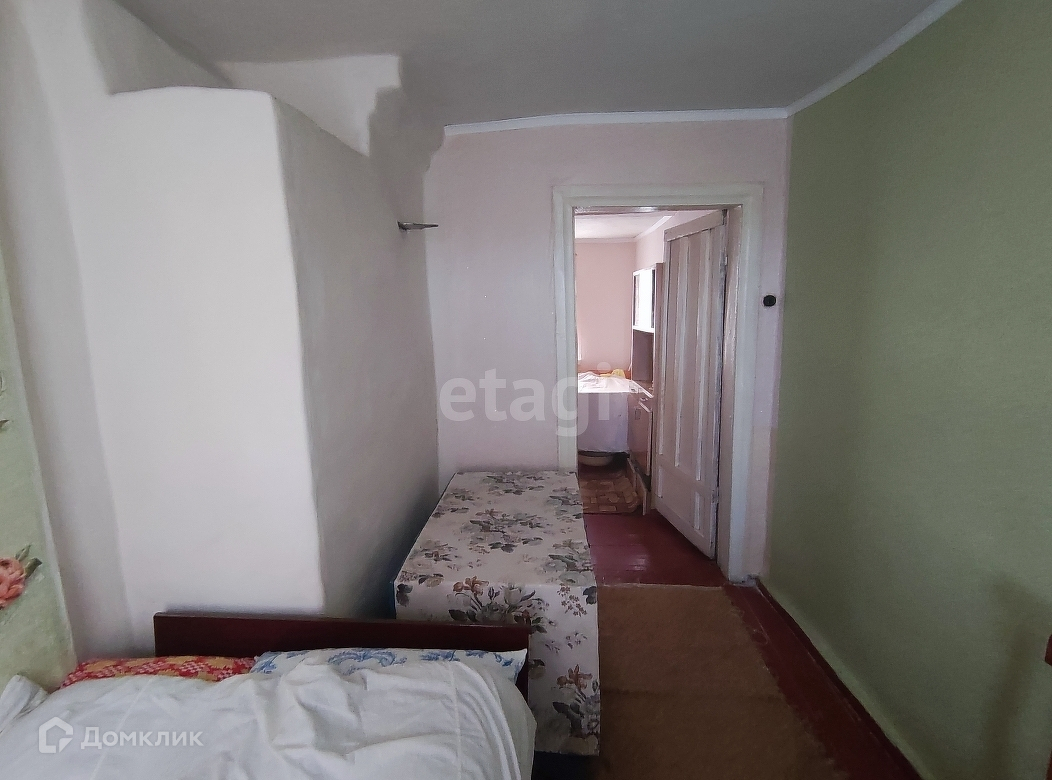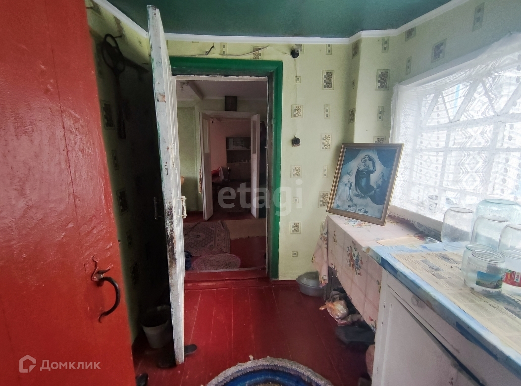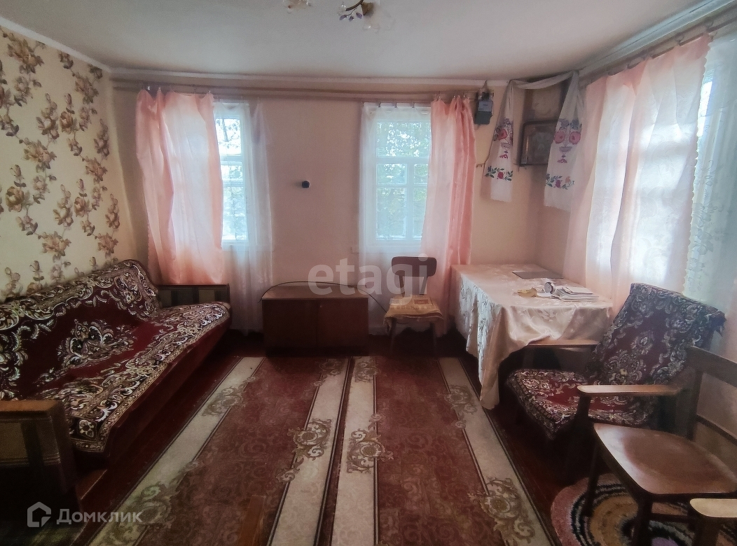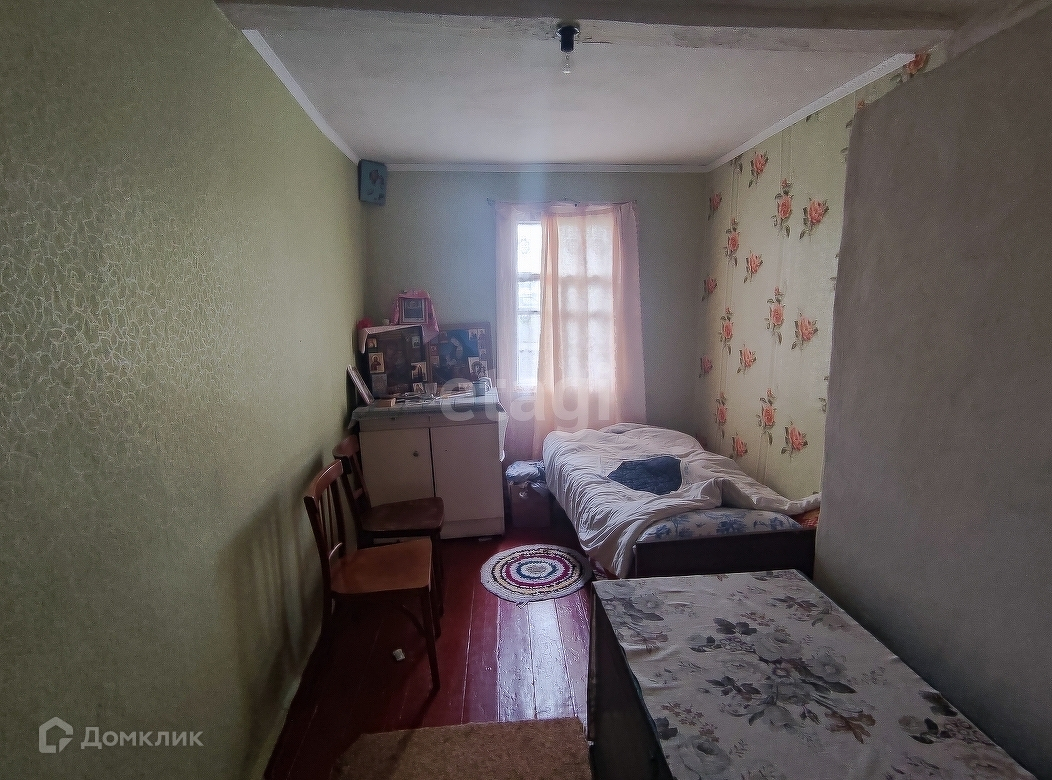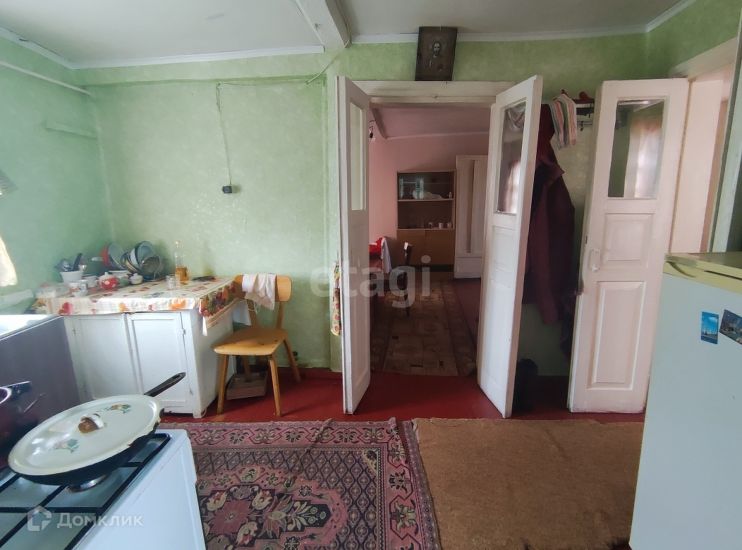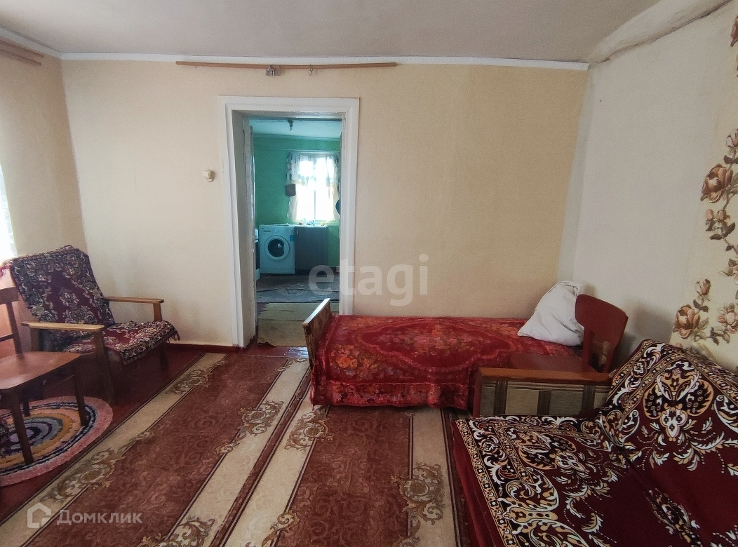 Дом 1966 года постройки, из глинобитного кирпича, обшит плоским шифером. Общая площадь 43,3 кв.м. Планировка: зальная комната, спальная комната, кухня и прихожая. Коммуникации: газ, свет, скважина- вода заведена в дом, отопление газовое от форсунки.