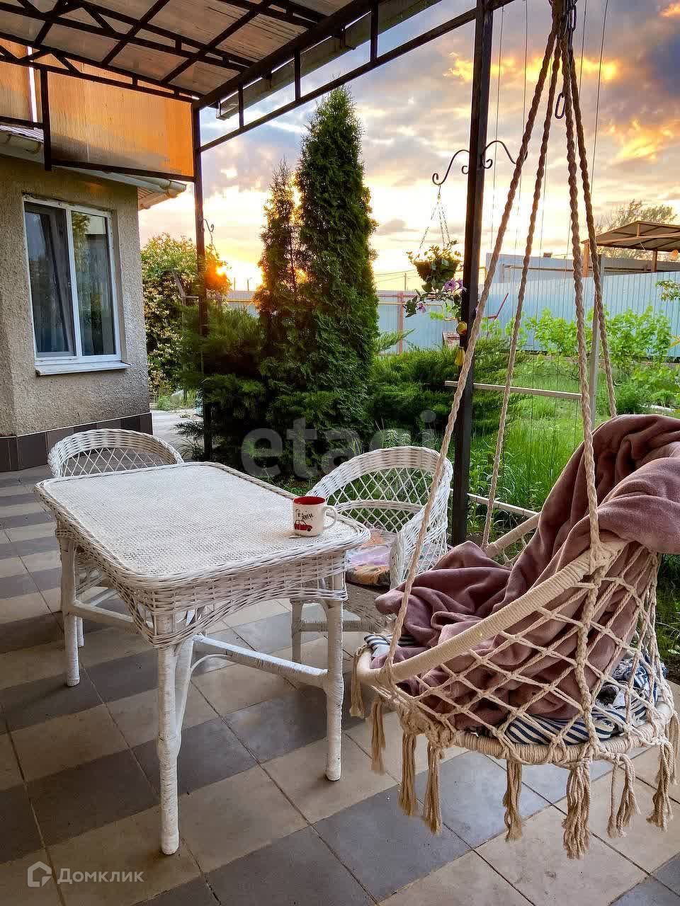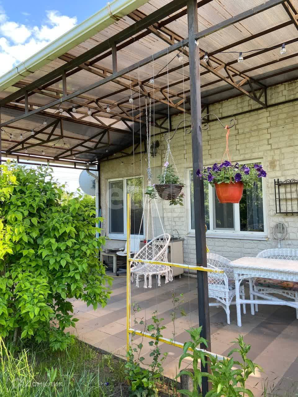 На участке есть гараж, навес, открытая терасса и сад (виноград, вишня, черешня, абрикос, слива, алыча, айва, клубника, малина, смородина, клубника, ирга, яблони и декоративные растения и цветы).