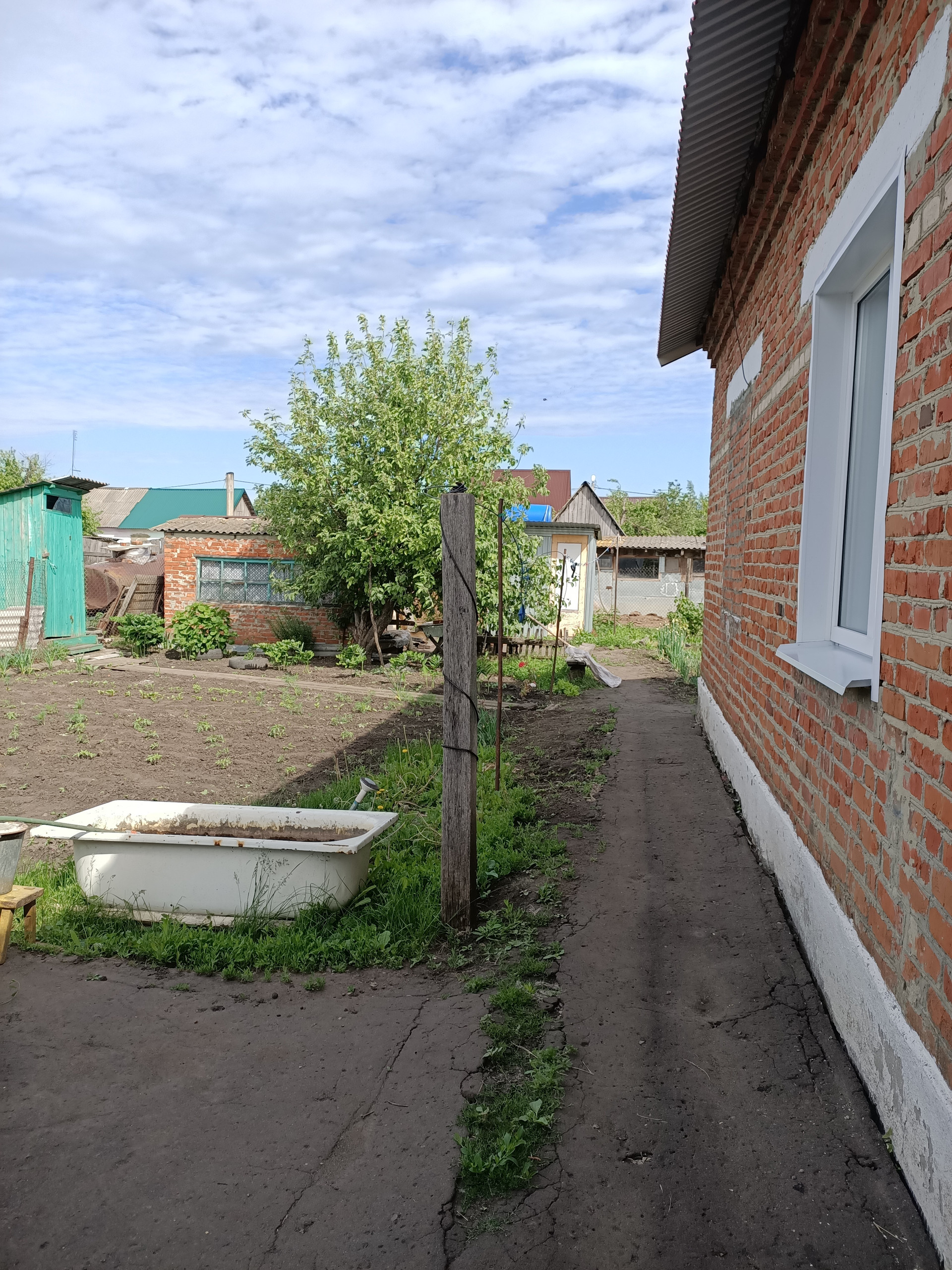 Хороший кирпичный двухквартирный дом, 3 комнаты, большая кухня, дом кирпичный, есть огород и хозяйственные постройки.