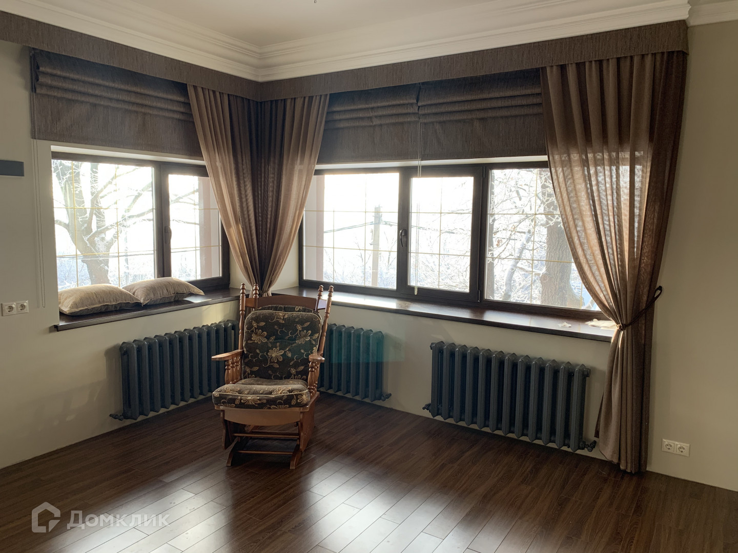 Внутри выполнен дорогостоящий дизайнерский ремонт, который не требует никаких дополнительных вложений и затрат на обустройство. Изолированные спальные комнаты, панорамное остекление. В особняке 5 спален, 7 гардеробных, 4 санузла, роскошная гостиная с камином, кабинет, 2 кухни и обеденный зал, детская игровая комната, спортивный зал, кинотеатр, бильярдная, каминный зал, склад продуктов и 1 огромная видовая терраса, с которой открывается вид на горную панораму. Элементы созданы вручную опытными мастерами. Сделана электрика, в том числе тв, интернет, пожарная и охранная сигнализация, видеонаблюдение (прокладка кабелей).