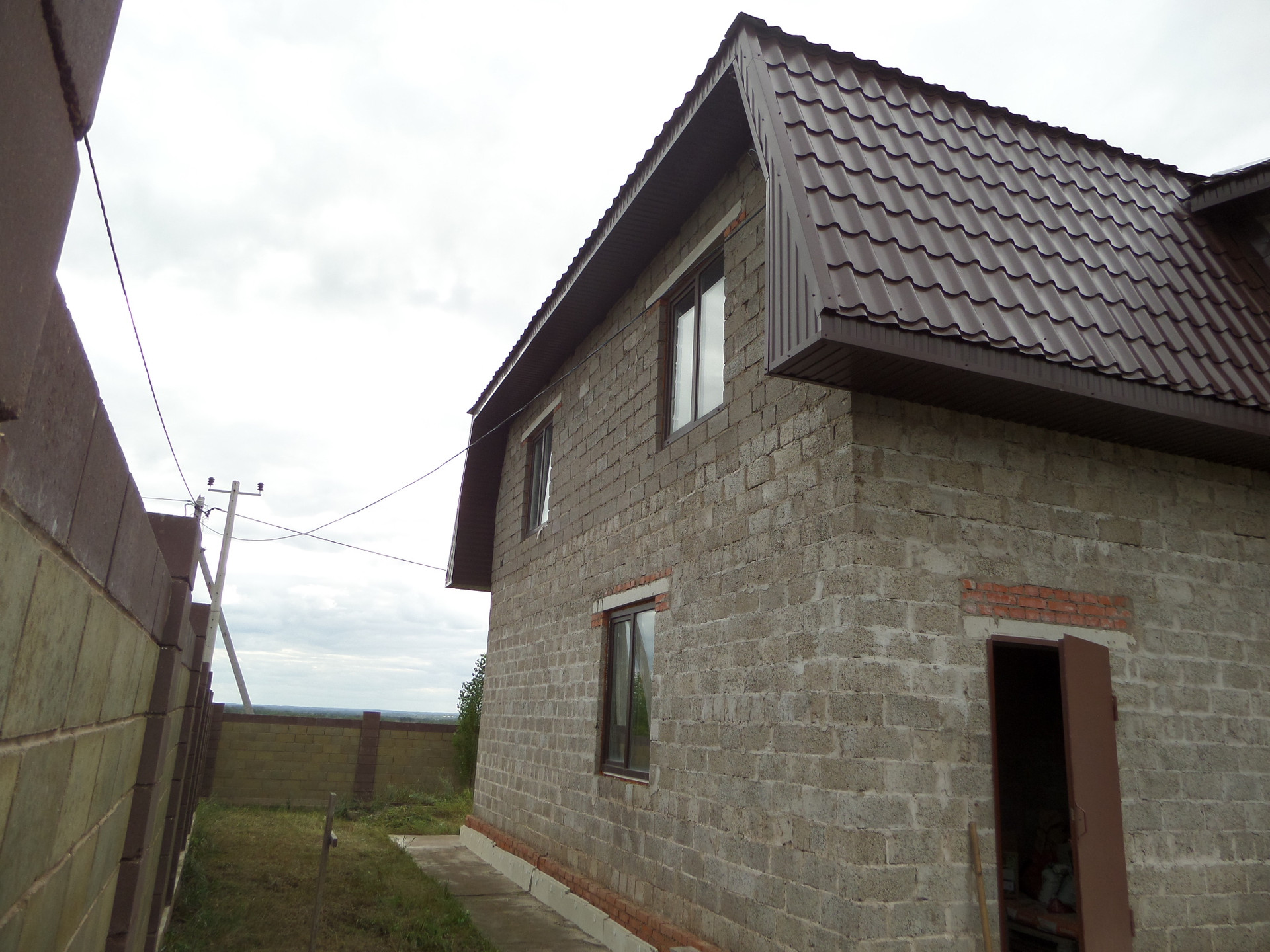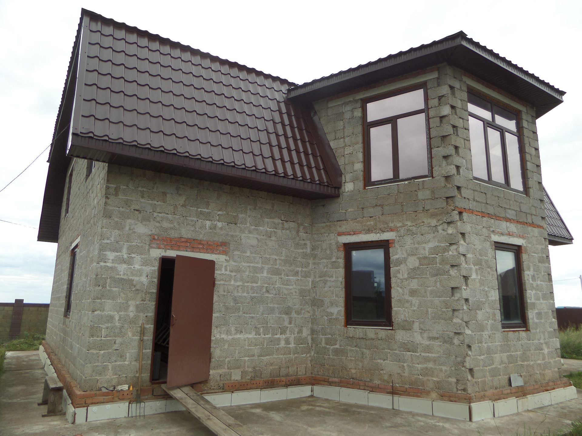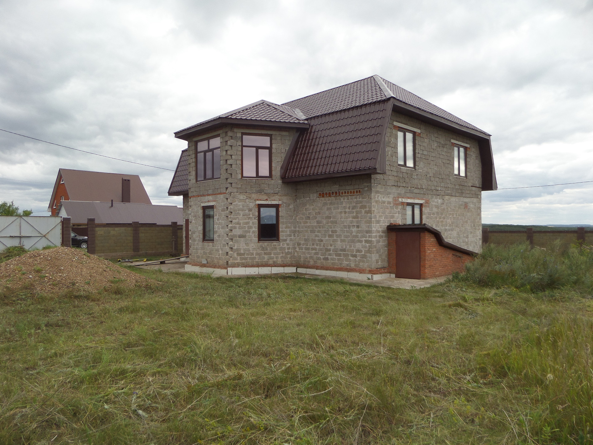 Коттедж 2-х этажный площадью 240 кв.м.+ цокольный этаж, стены - керамзито-бетонные блоки, крыша - металло-черепица. Требуется внутренняя отделка.