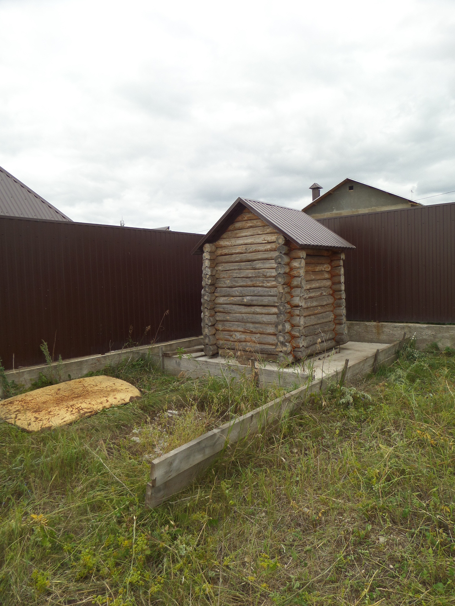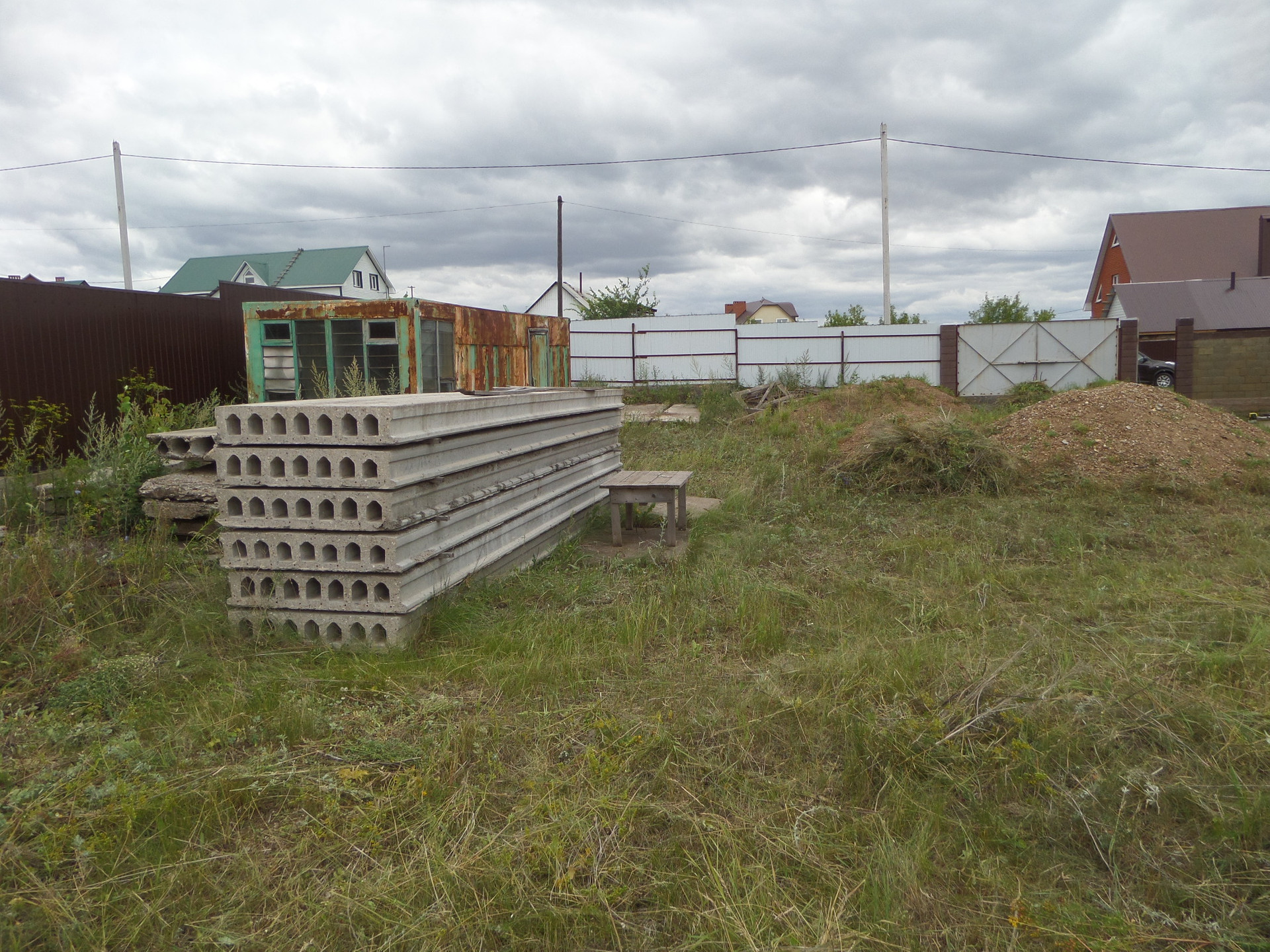 На участке имеется временный туалет и 6 новых плит перекрытия для гаража.