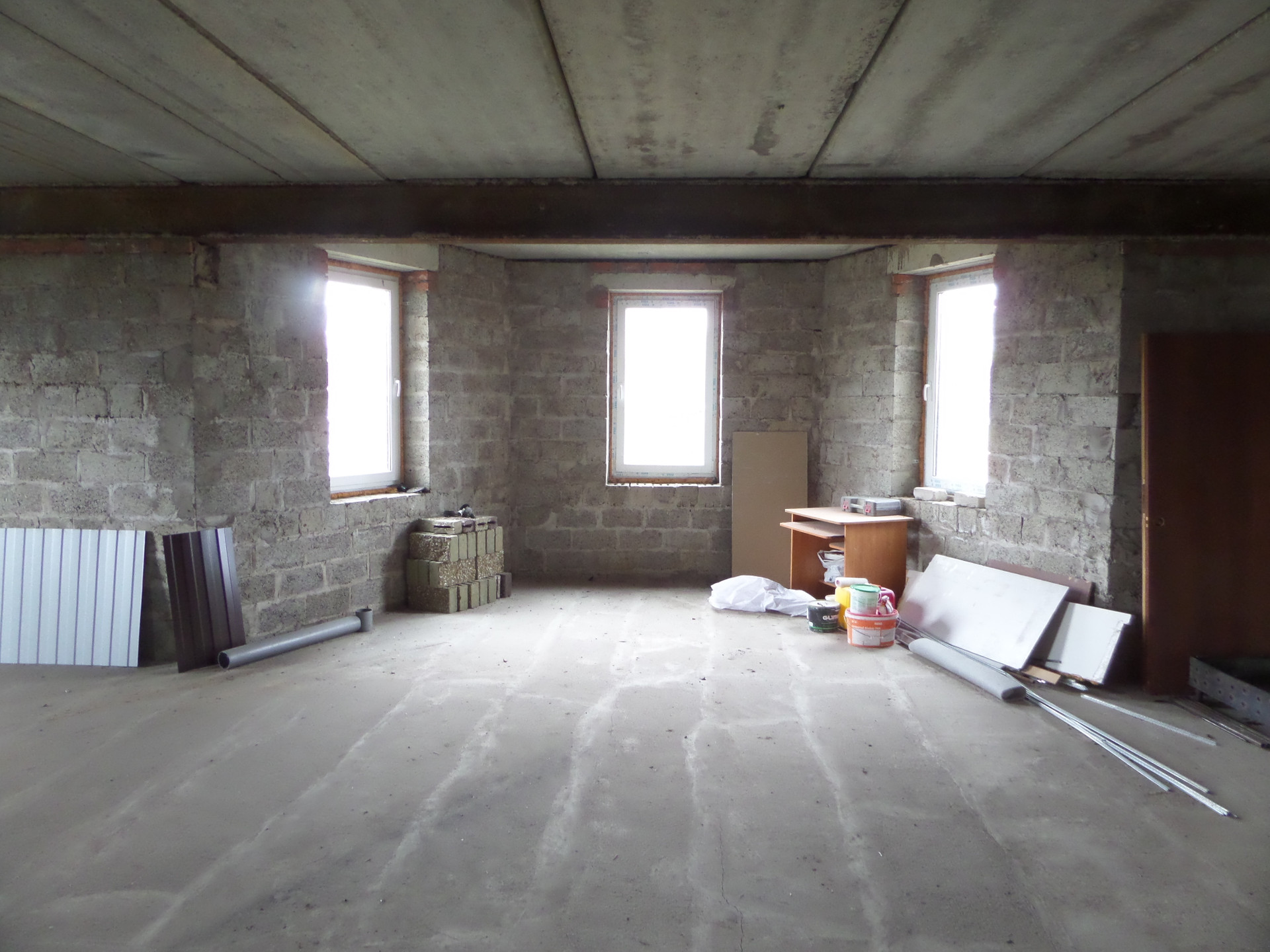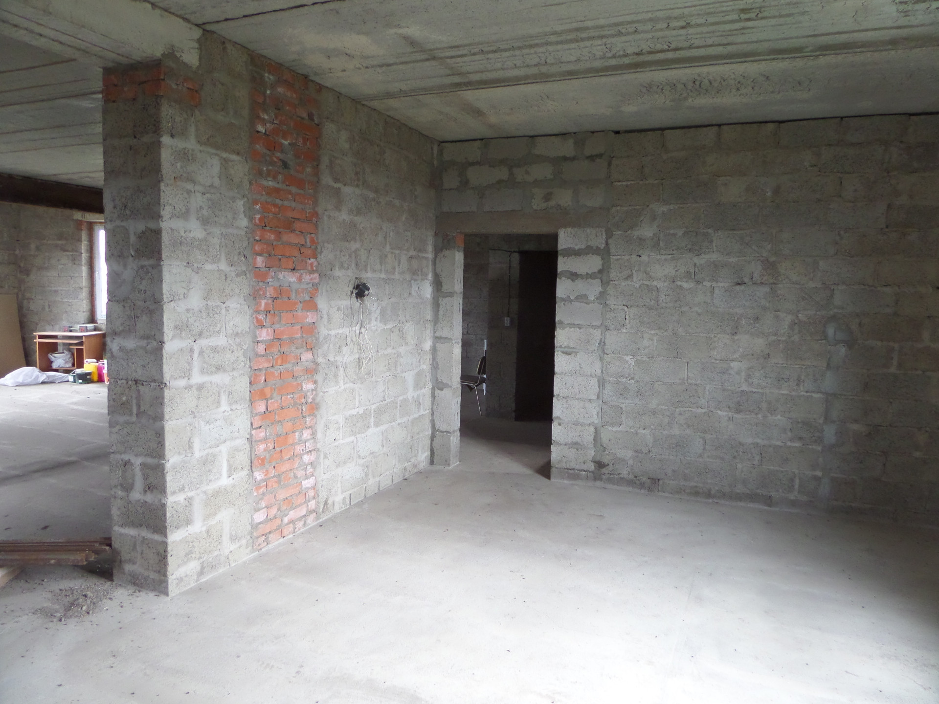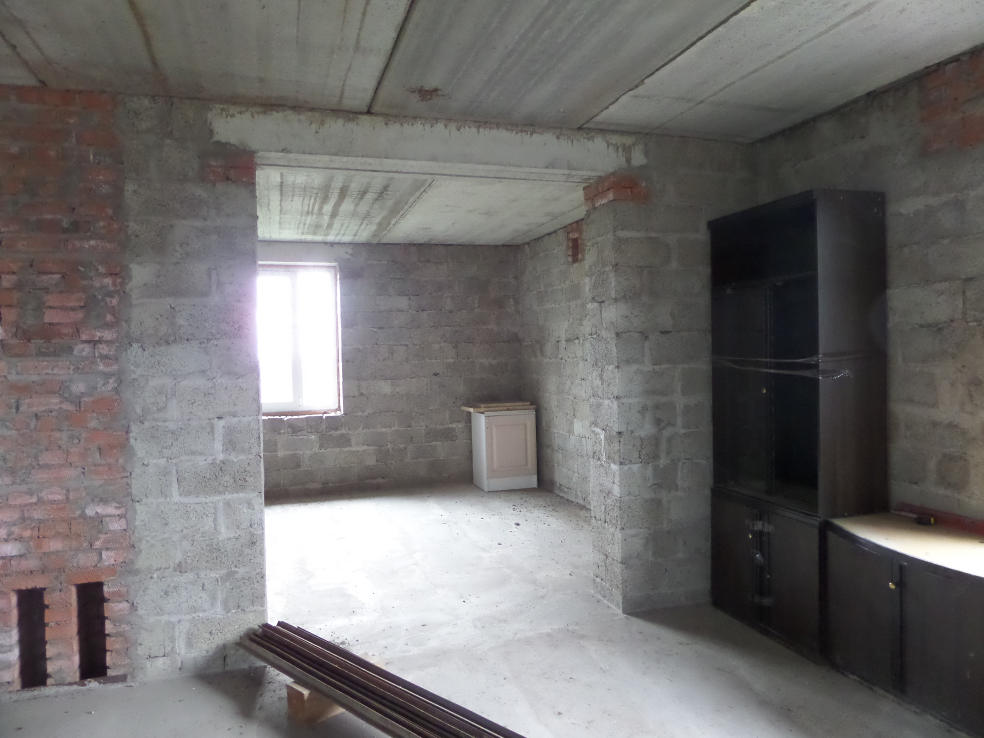 Железобетонные плиты перекрытия. На полах стяжка, стены без отделки. Высота потолков. включая цоколь, 3 метра. Канализация шамбо, переливная, два колодца.