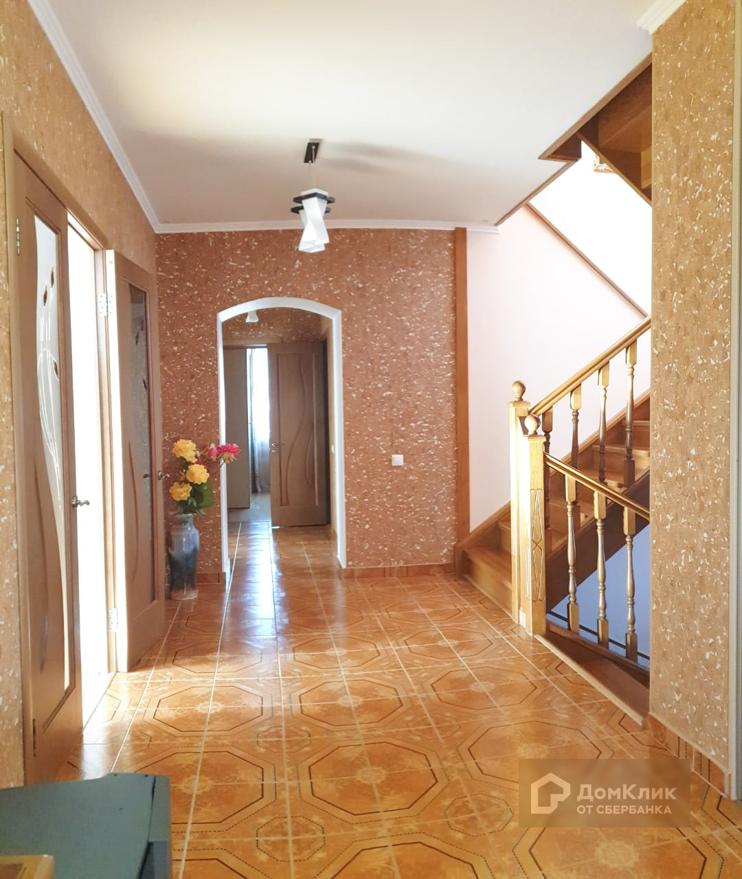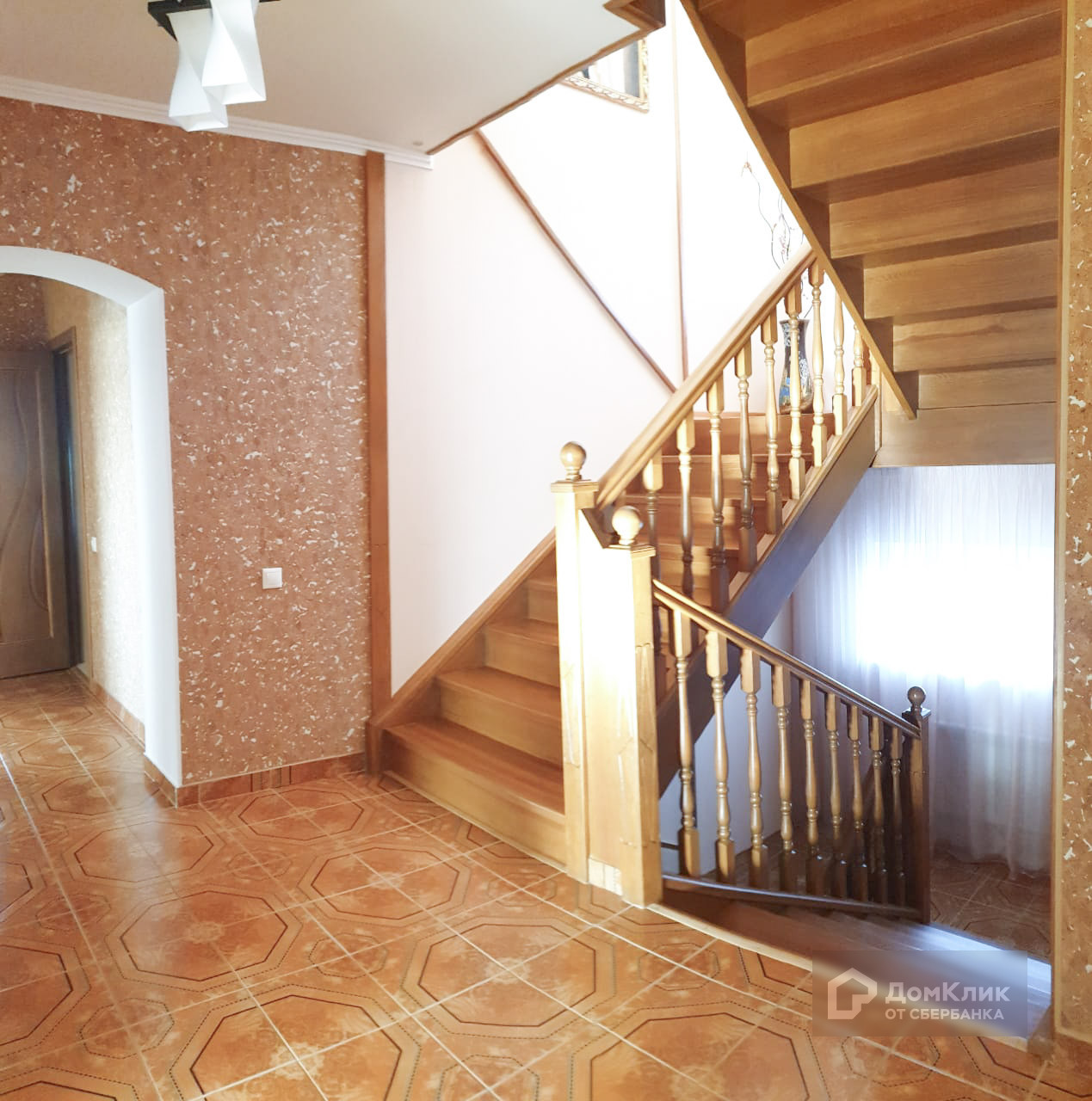 Лестница, мебель и двери - натуральный массив.