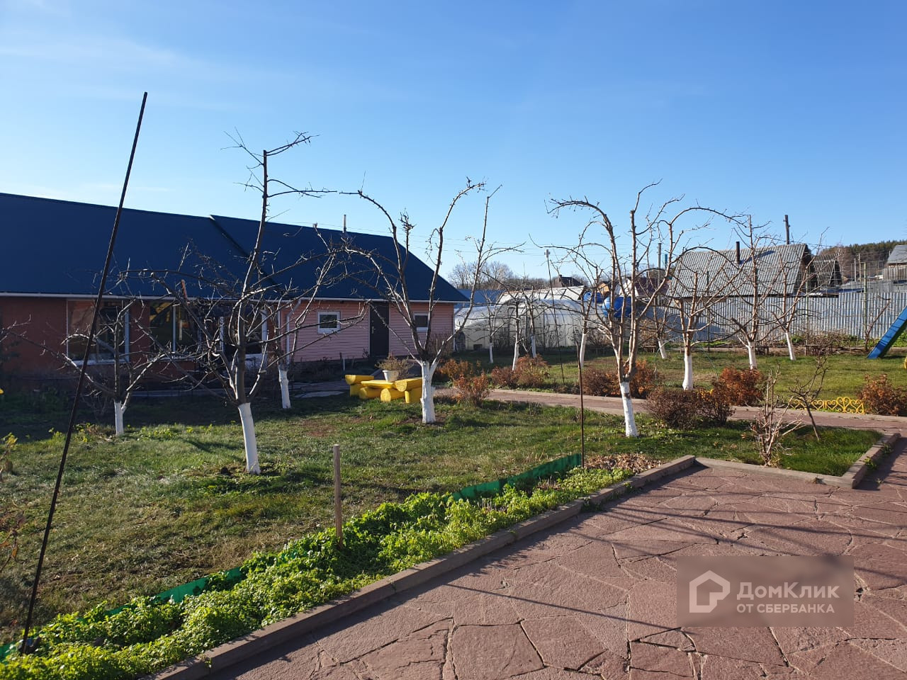 На участке расположены баня с кухней и зоной отдыха, 2 гаража, детская площадка.