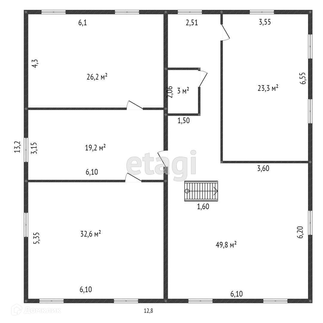 Второй этаж: зал и четыре спальни.