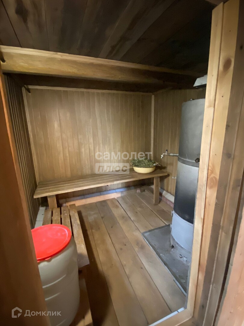 А также на территории участка расположена баня из бруса. Стены снаружи бани отделаны "евробрусом". Размеры бани 2,62 м*4,63 м, парная 2,15 м*2,17 м.