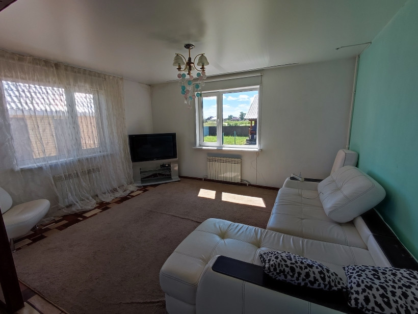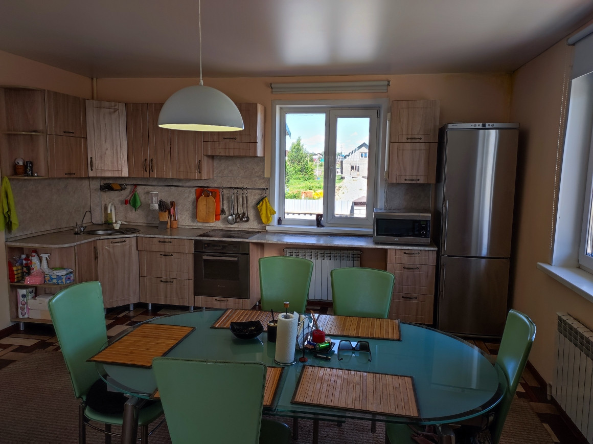 Комфортная планировка с большой кухней-гостинной 24 кв м., спальня, санузел, топочная, 2 этаж 2 комнаты, гардеробная. Вся мебель и техника остается в доме.