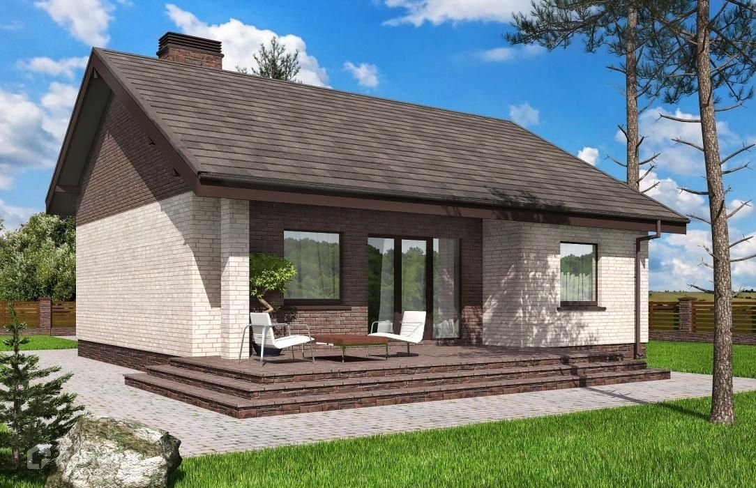 По проекту дом состоит из двух комнат, кабинета, большой кухни-гостинной, отдельной гардеробной при входе, для экономии места площади тамбура. При желании можно выполнить изменение планировки на три полноценные комнаты, со своими нишами под шкаф-купе.