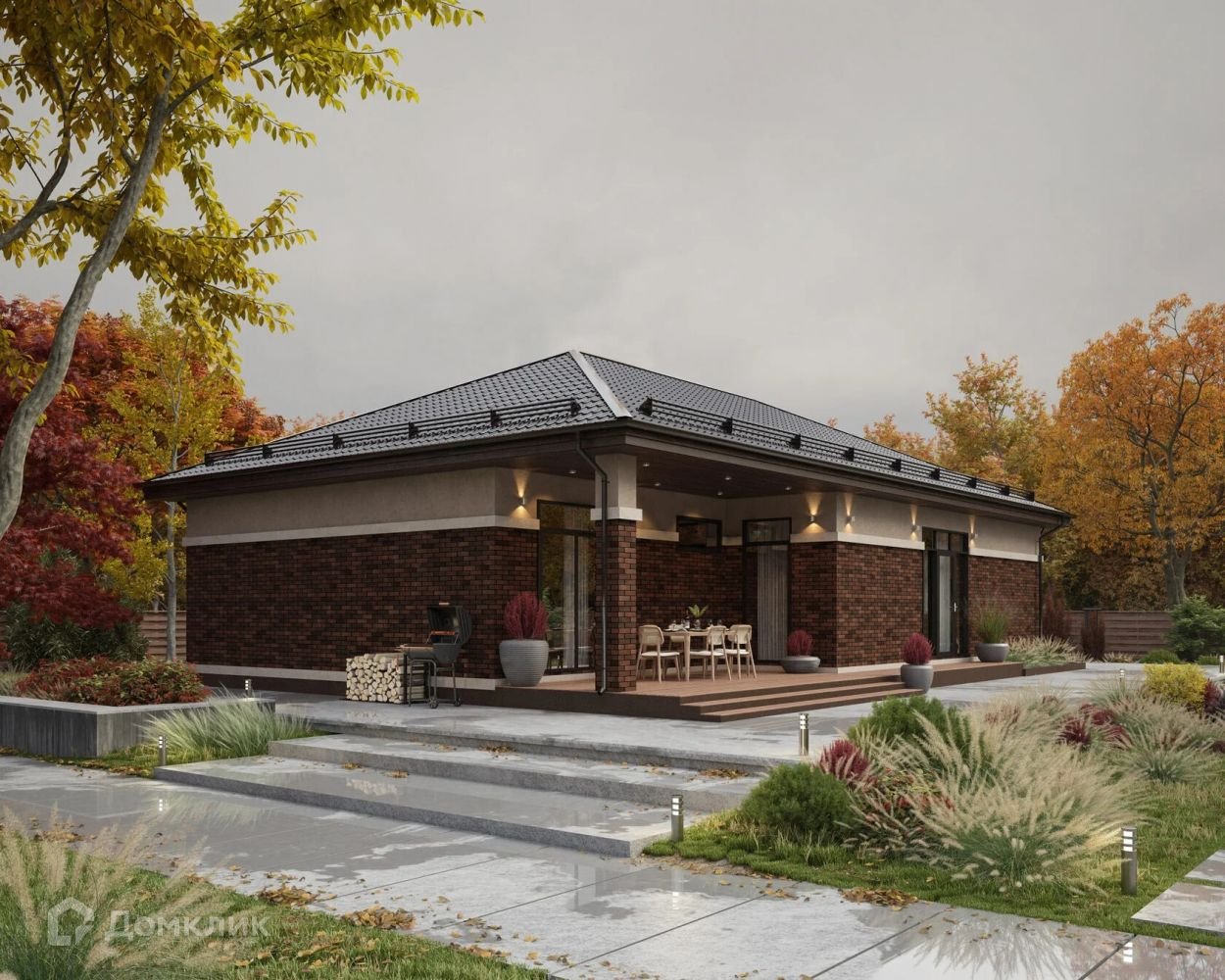 В  доме есть все, что нужно для комфортного проживания семьи: просторная входная группа, большая террасса, 3 спальни ( одна из них мастер спальня с гардеробной и санузлом), уютная просторная гостинная с выделенной зоной кухни.  Пространство дома распланировано таким образом, что учтены все тонкости жизни в доме. Просторная терраса позволит Вам в летний период насладиться отдыхом на свежем воздухе.