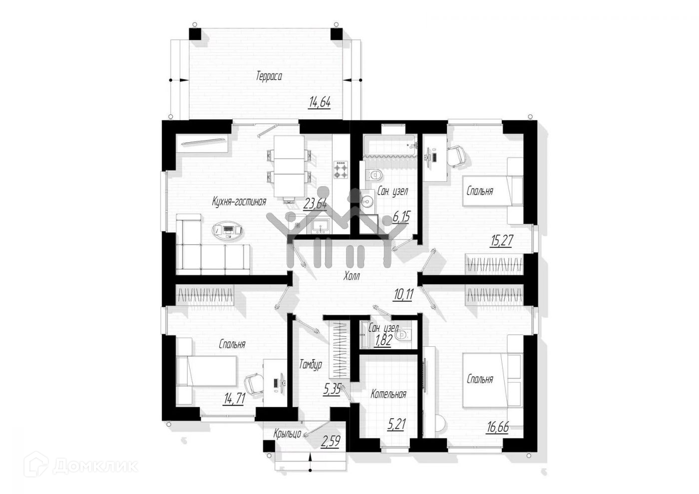 Общая площадь 1-го этажа (без учета крыльца и террасы): 98,92 м2