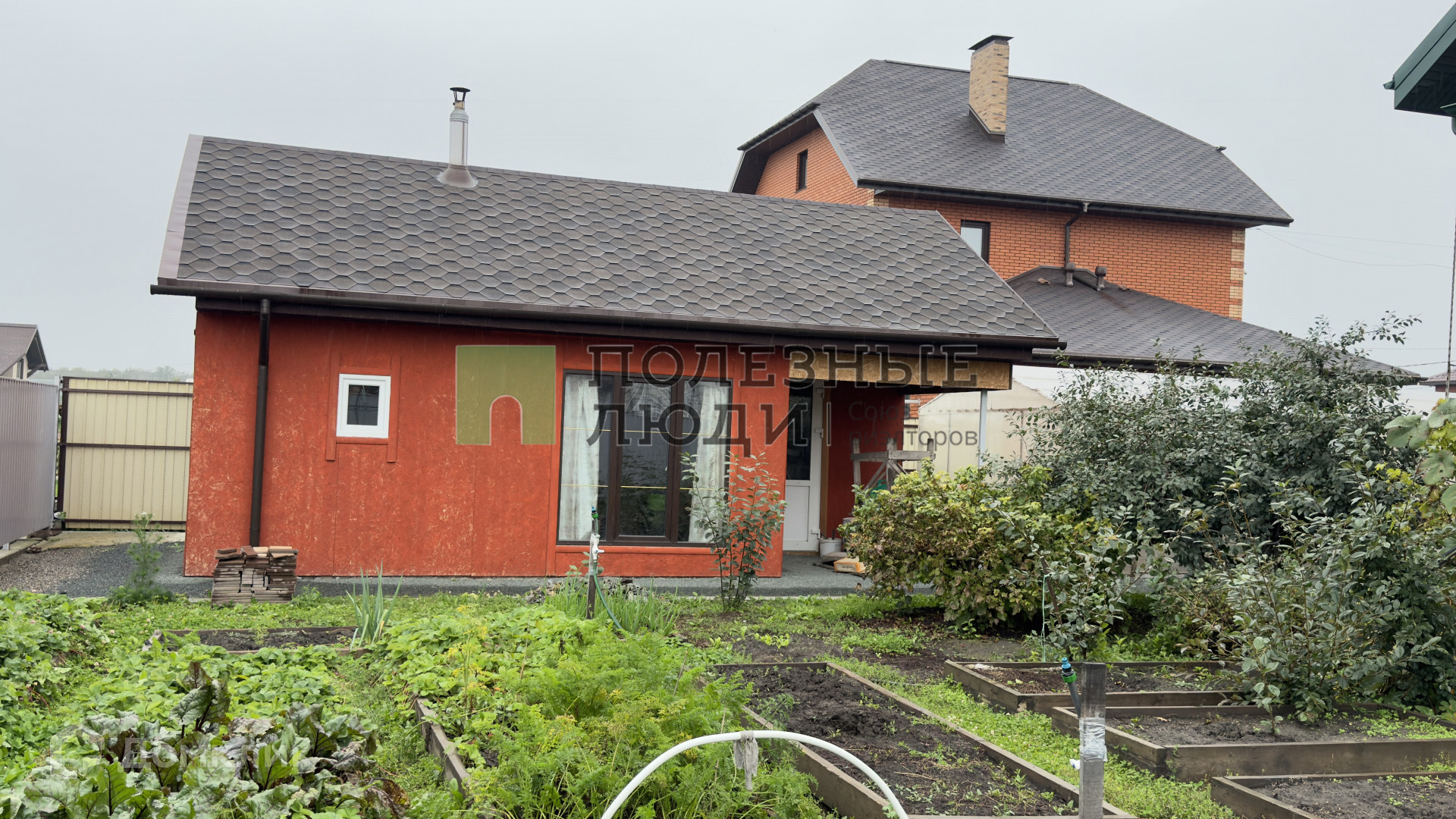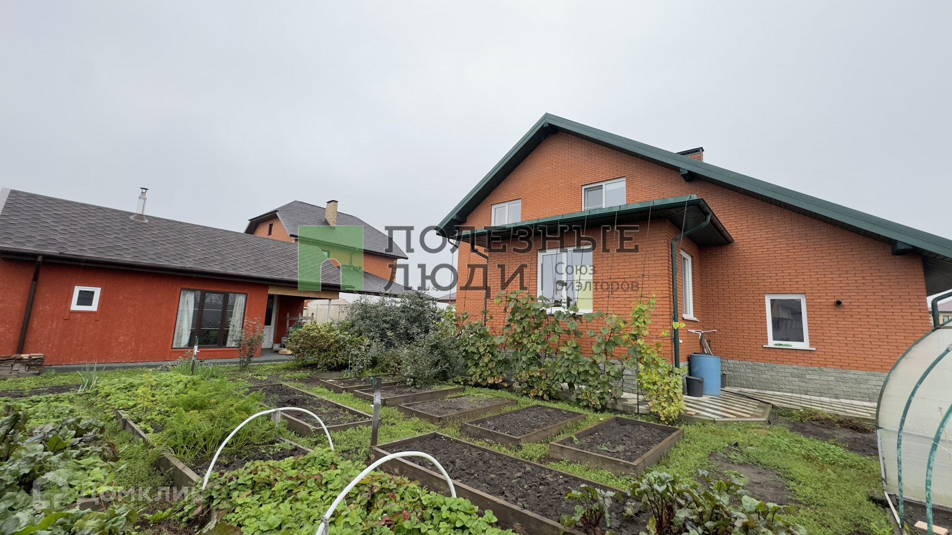 На участке различные посадки, две теплицы, цветник.