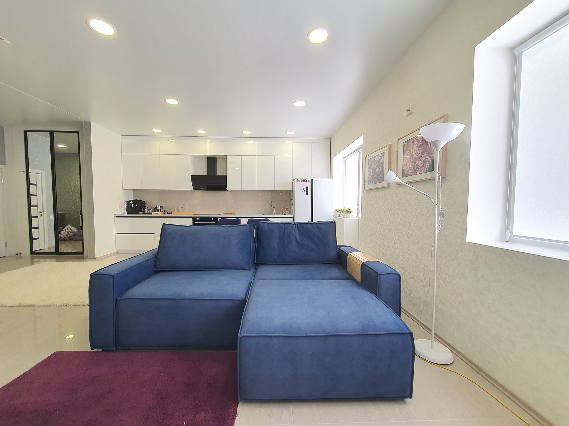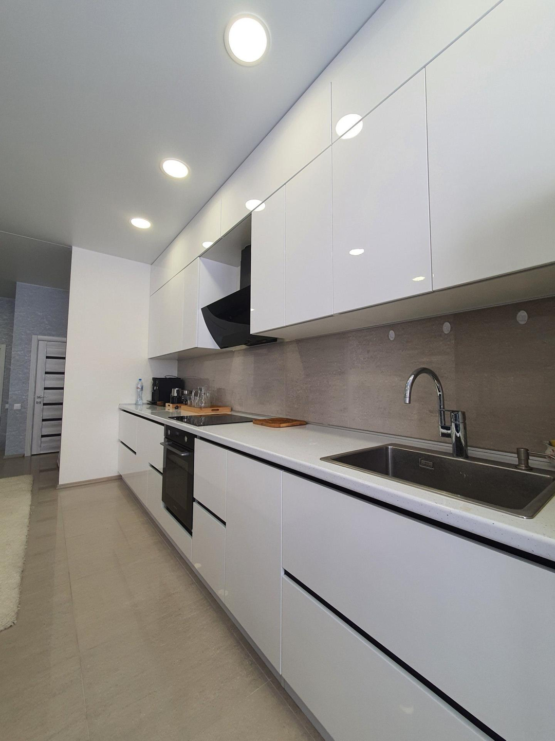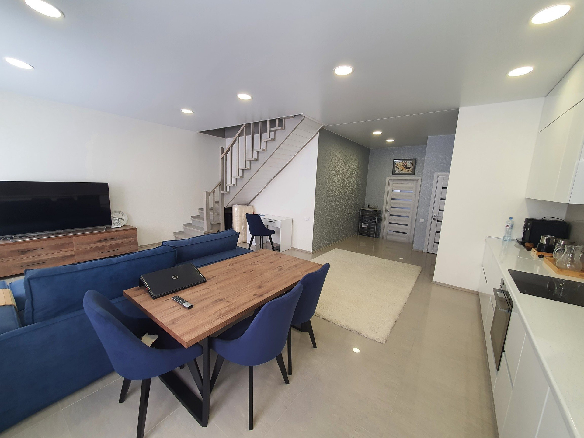Гостинная оборудованна кухонным гарнитуром со встроенной бытовой техникой, большой зоной для приема гостей и сбора всей вашей семьи.