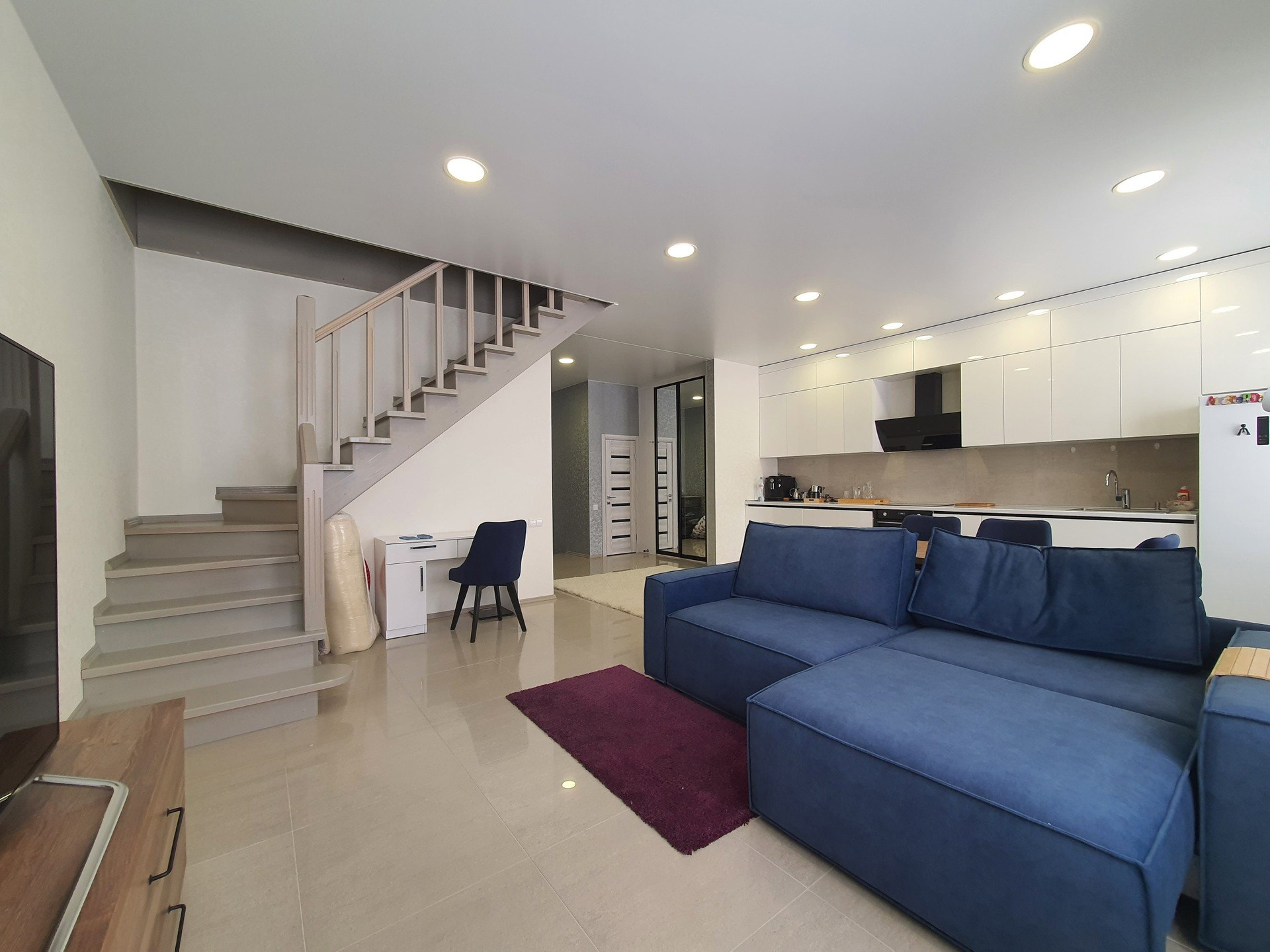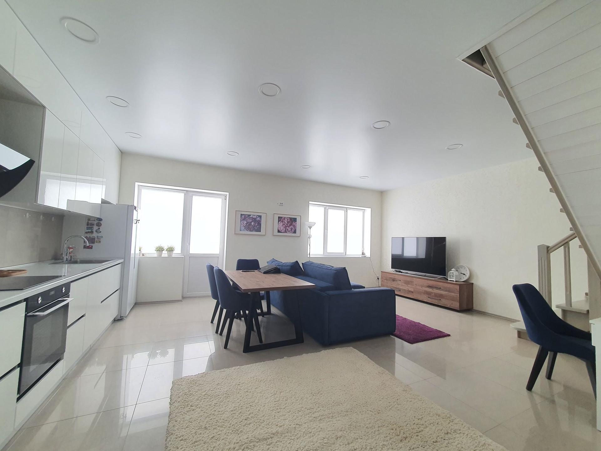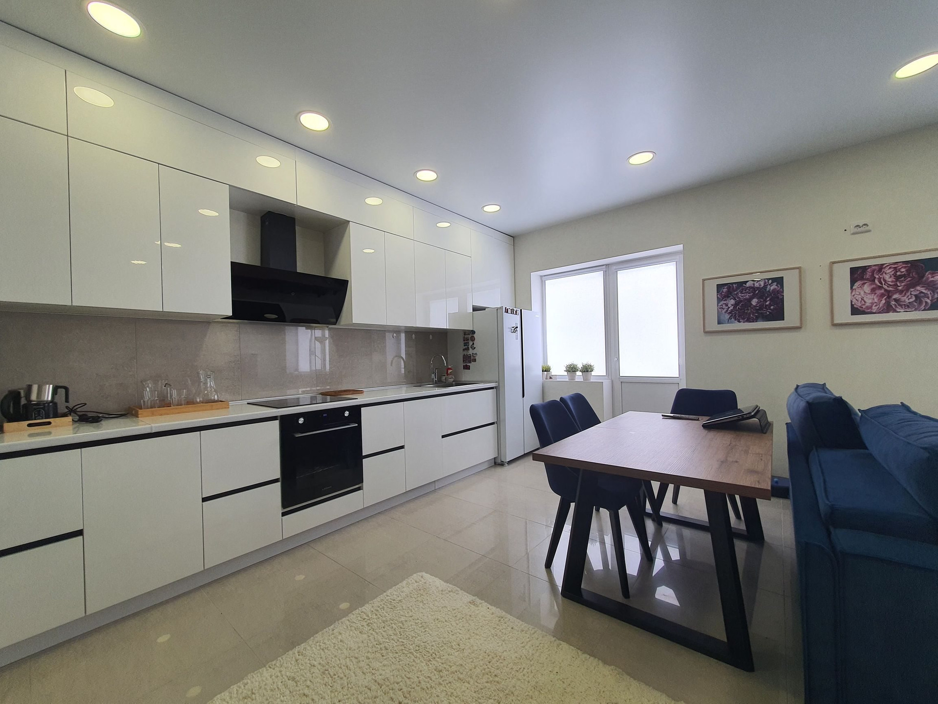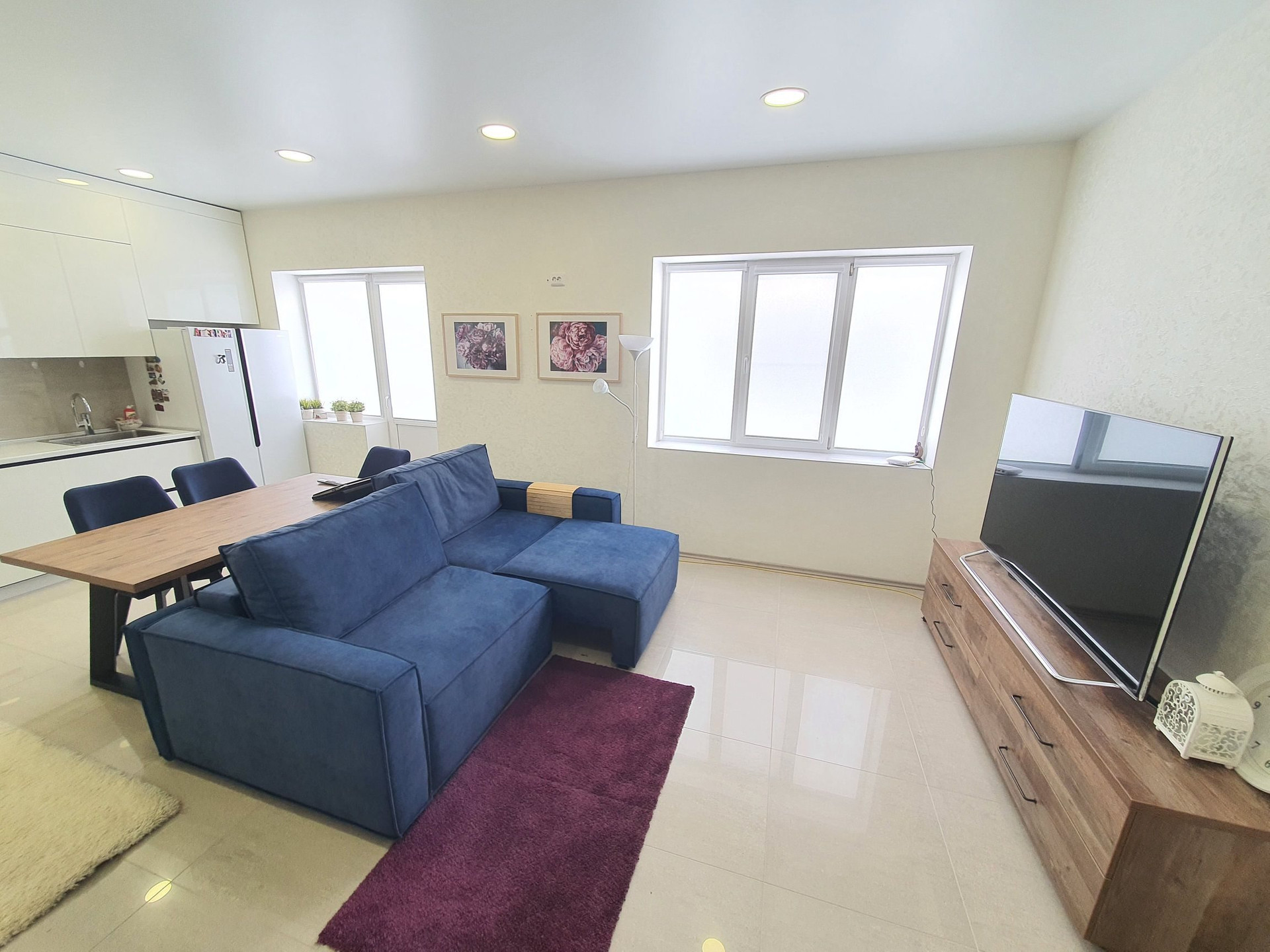 Гостинная оборудованна кухонным гарнитуром со встроенной бытовой техникой, большой зоной для приема гостей и сбора всей вашей семьи.