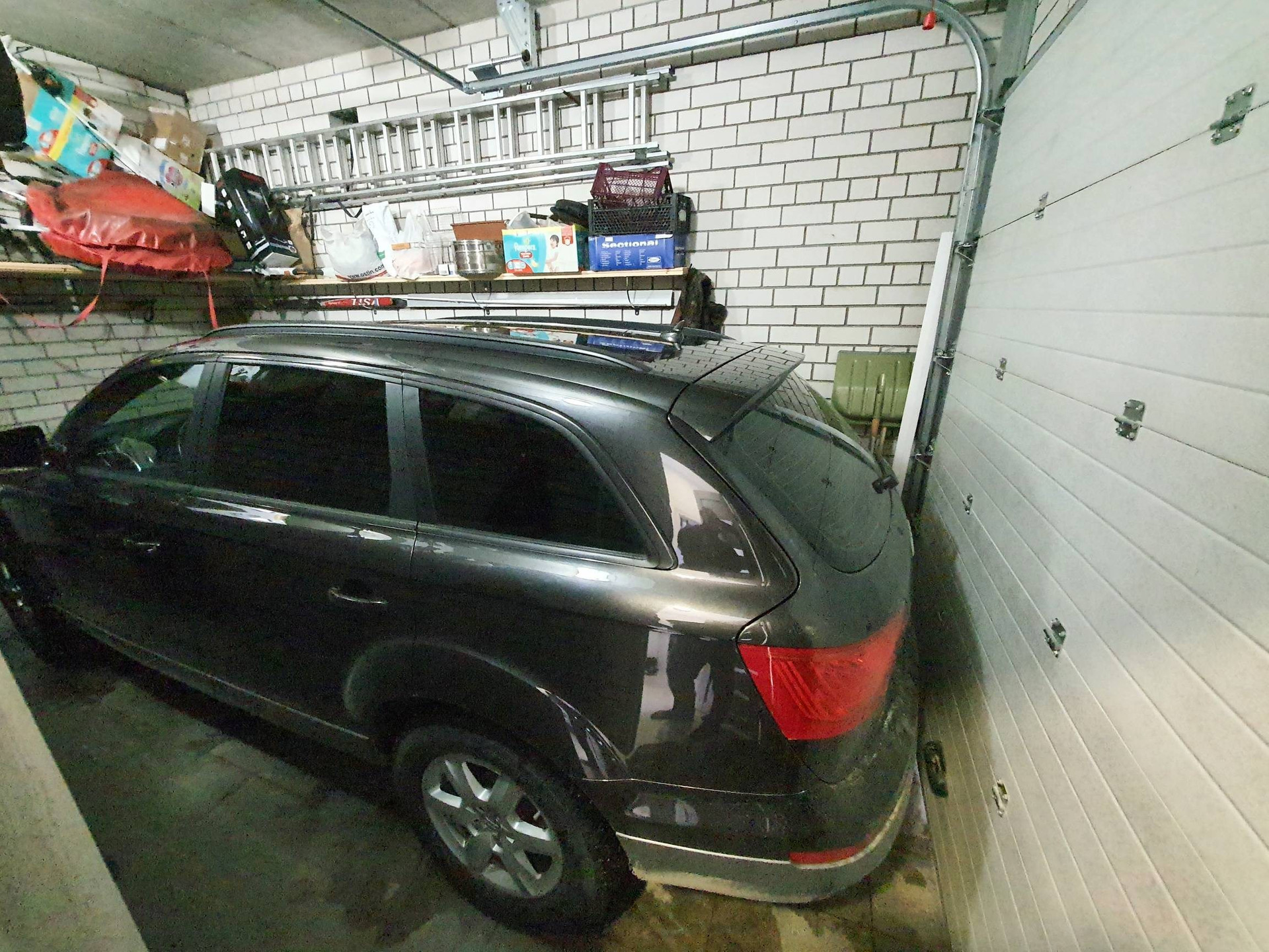 Планировка первого этажа со встоенным теплым гаражом. Въездные ворота в гараж оборудованы подъемным механизмом и управляется дистанционно.