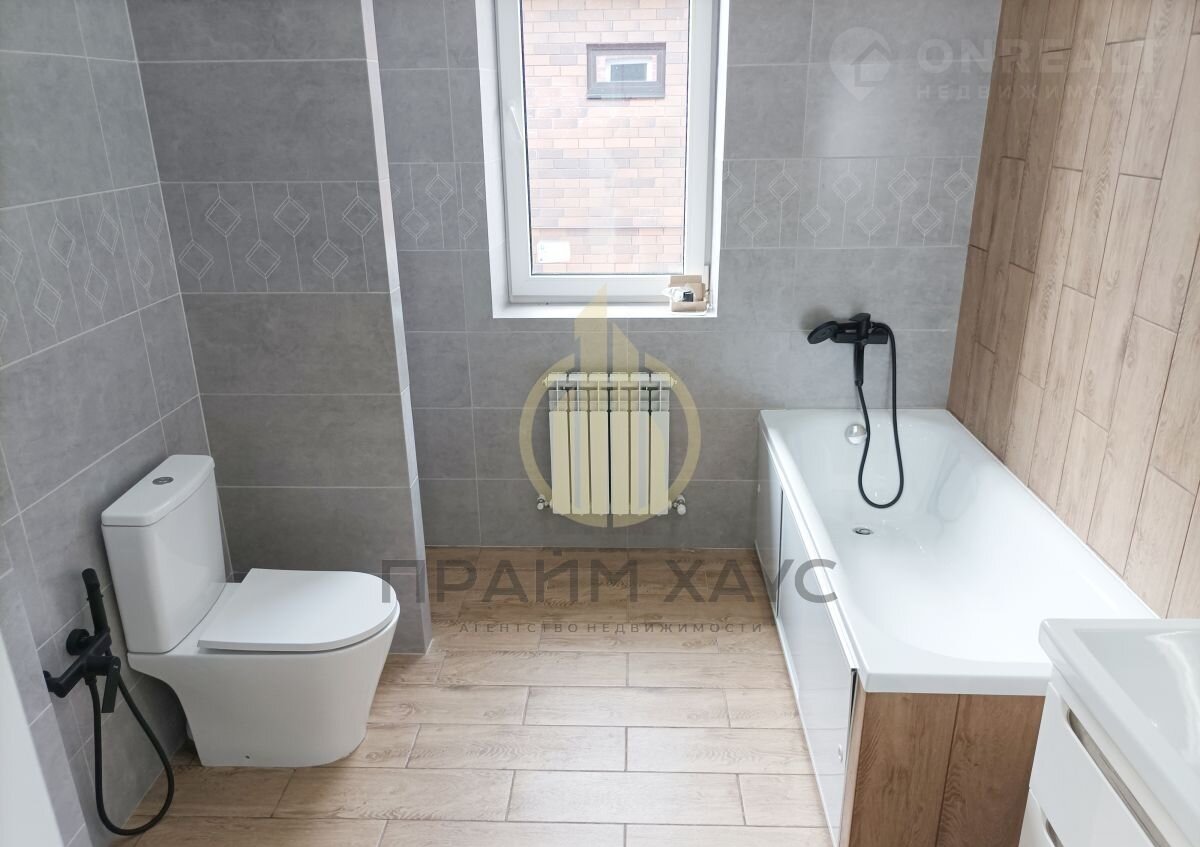 Отопление газовое с разводкой радиаторов по всему дому и теплым полом .