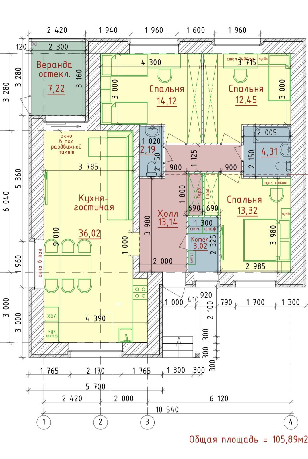 Общая площадь 96.7 м2