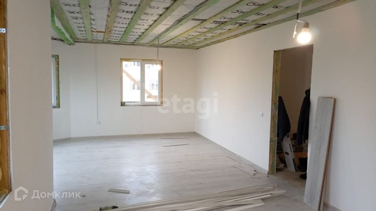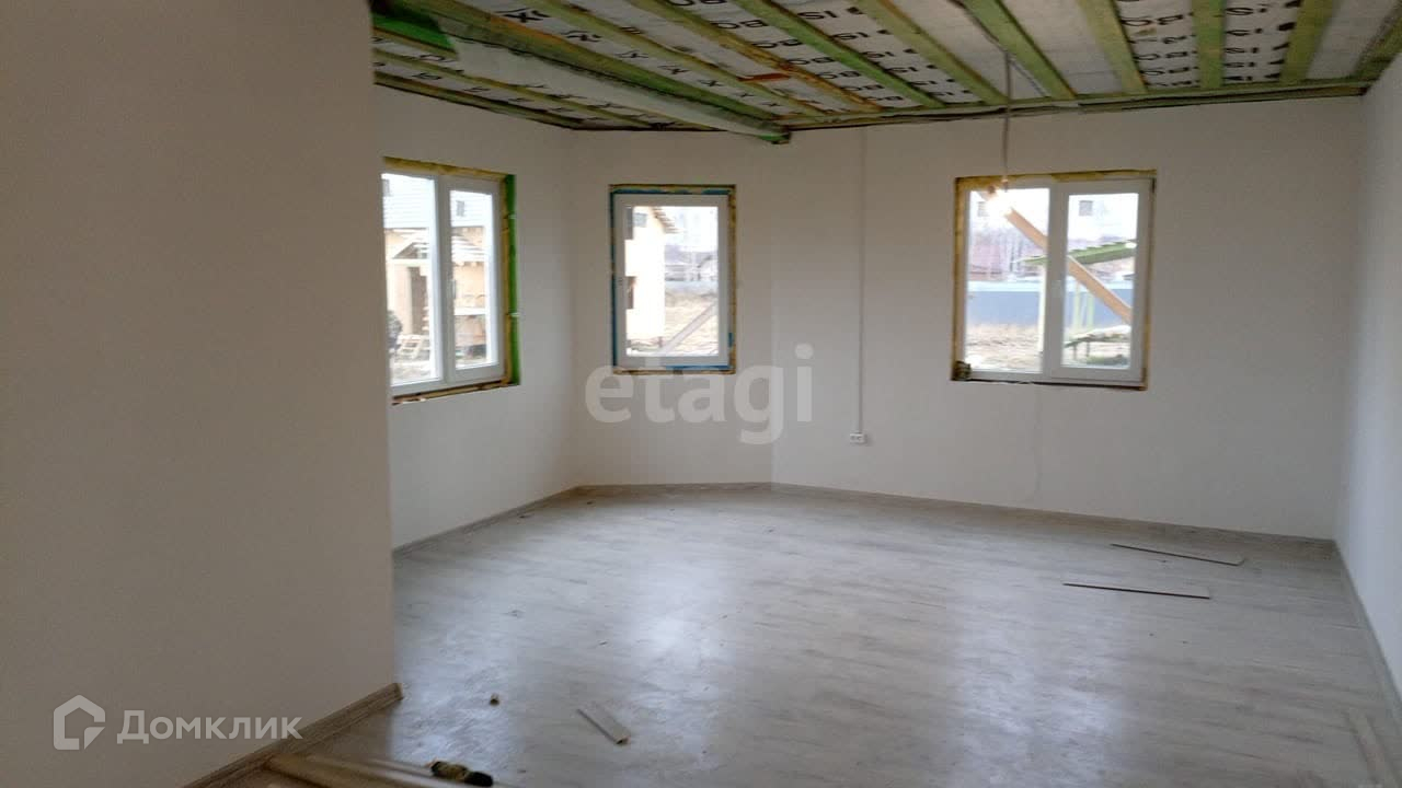 Дом каркасный, фундамент - сваи. В доме пять комнат, большая кухня - гостиная, 2 санузла, на первом этаже большой холл. Высокие потолки, лестница деревянная. Дом для постоянного проживания.