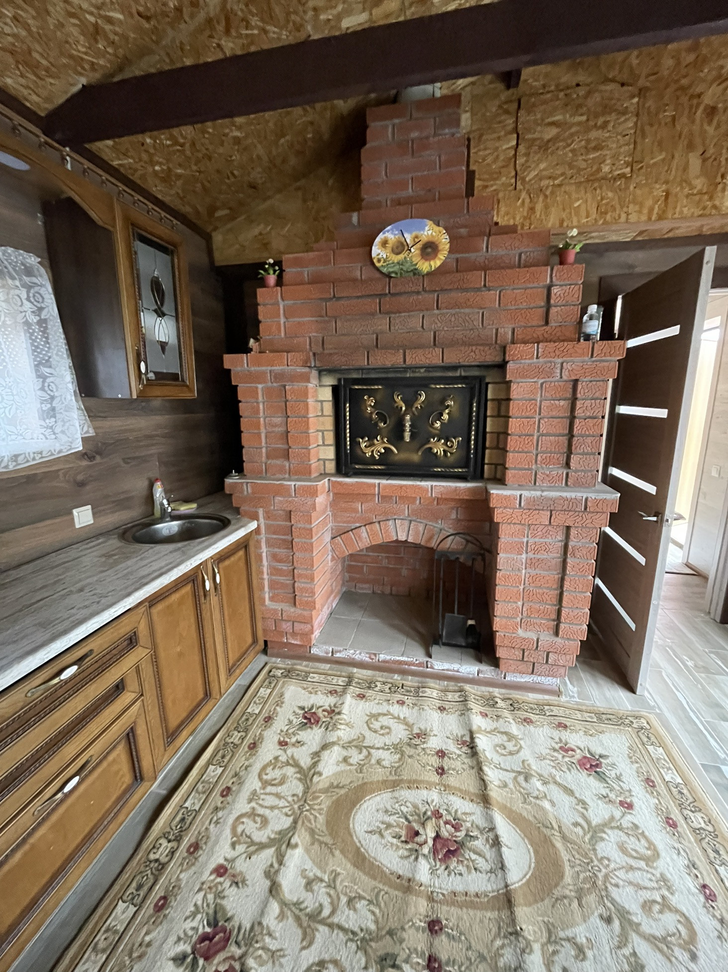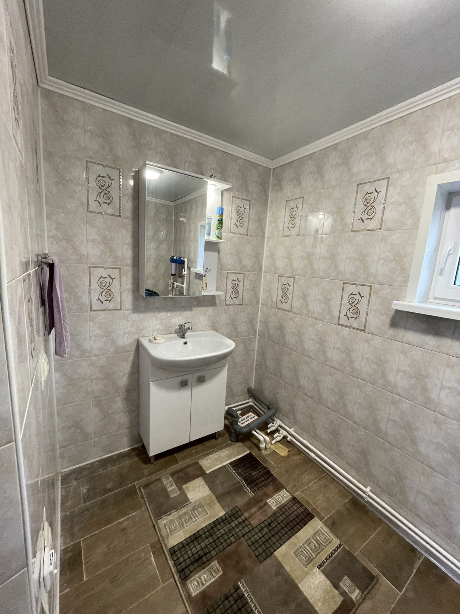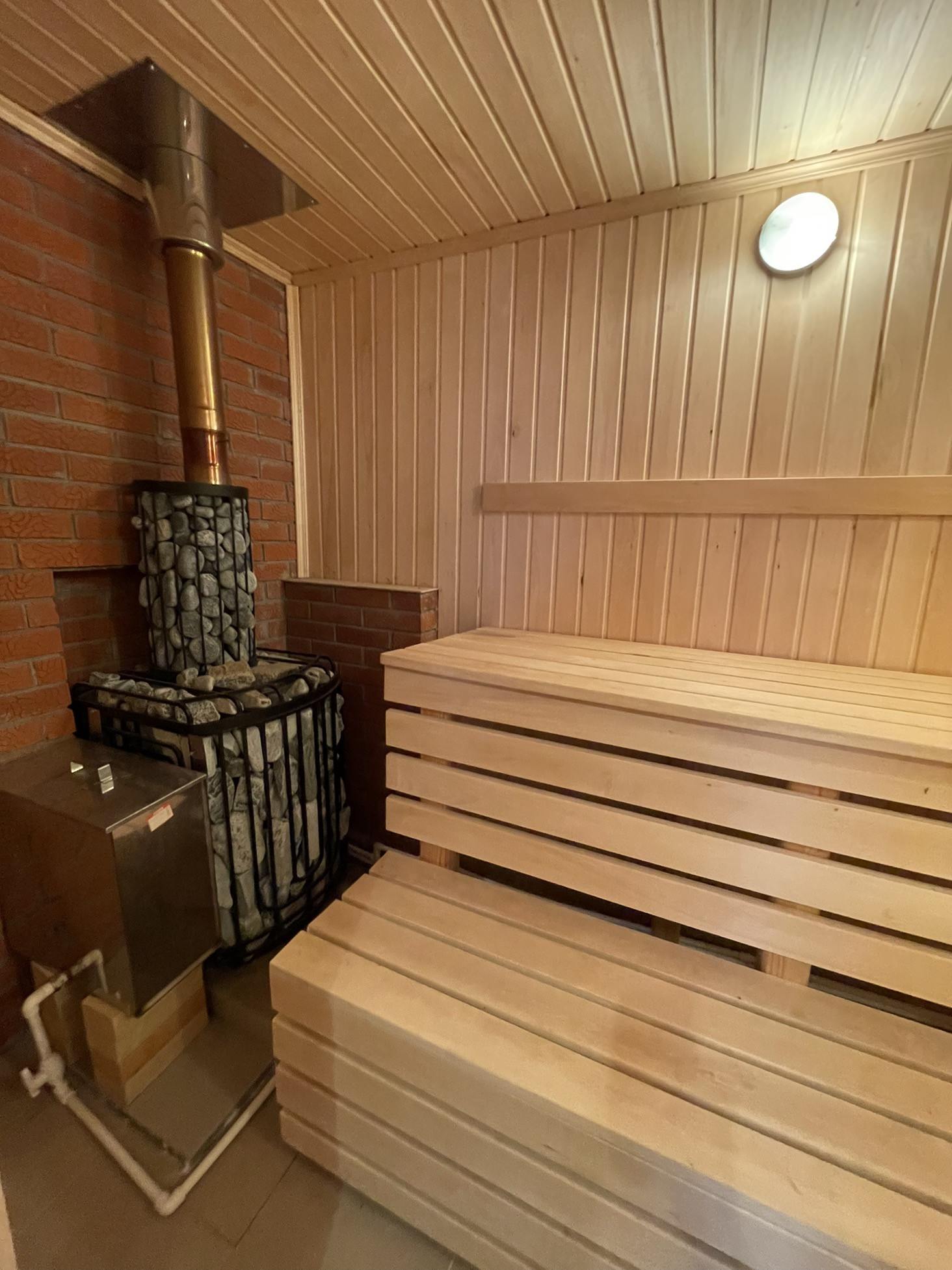 Банный комплекс: гостиная с кухней, санузел, моечная и парная. Баня работает на газу и на дровах. Тёплый пол электрический по зонам.