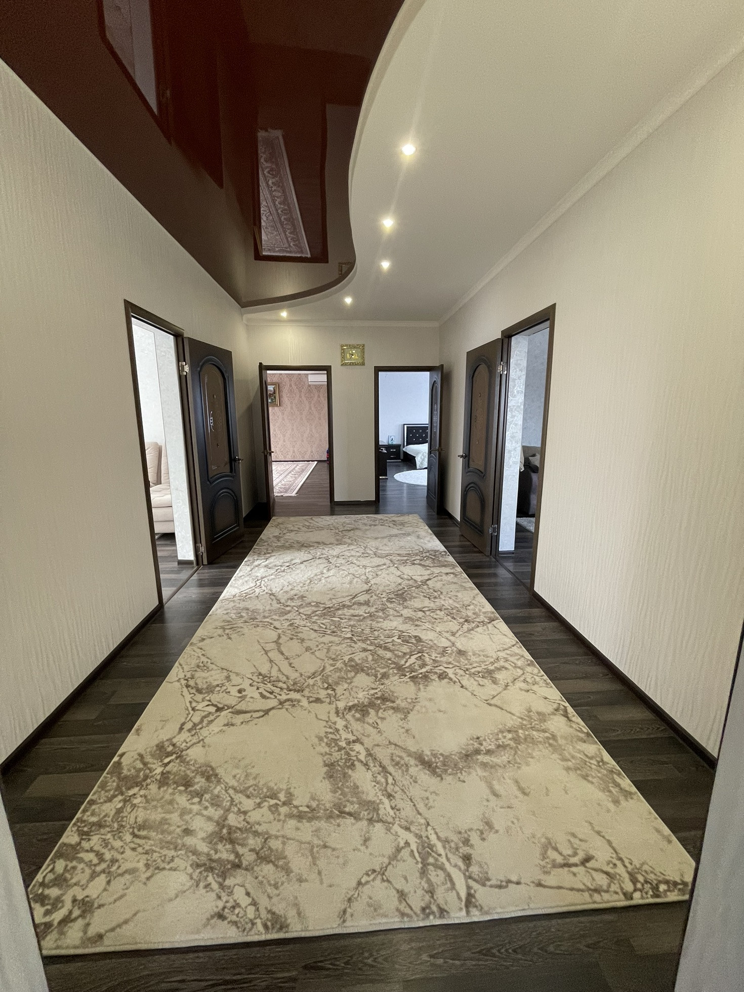 Прихожая,гостиная,зал,2 спальные комнаты На полу плитка, ламинат .В доме сделан современный ремонт.Межкомнатные двери в каждой комнате. Натяжной потолок с точечной системой освещения.Все вопросы по телефону .Торг реальному покупателю .Документы готовы к продаже .