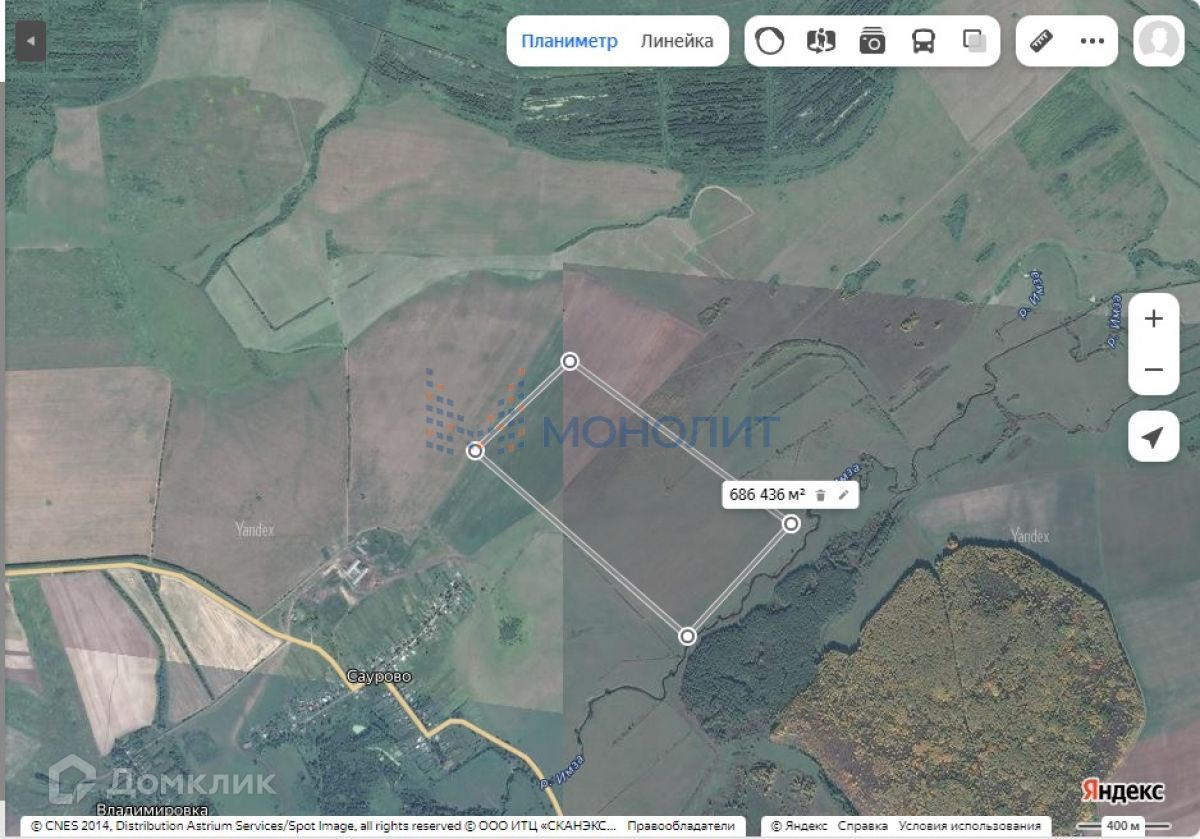 Участок состоит из 3х смежных участков общей площадью 58.8 Га.