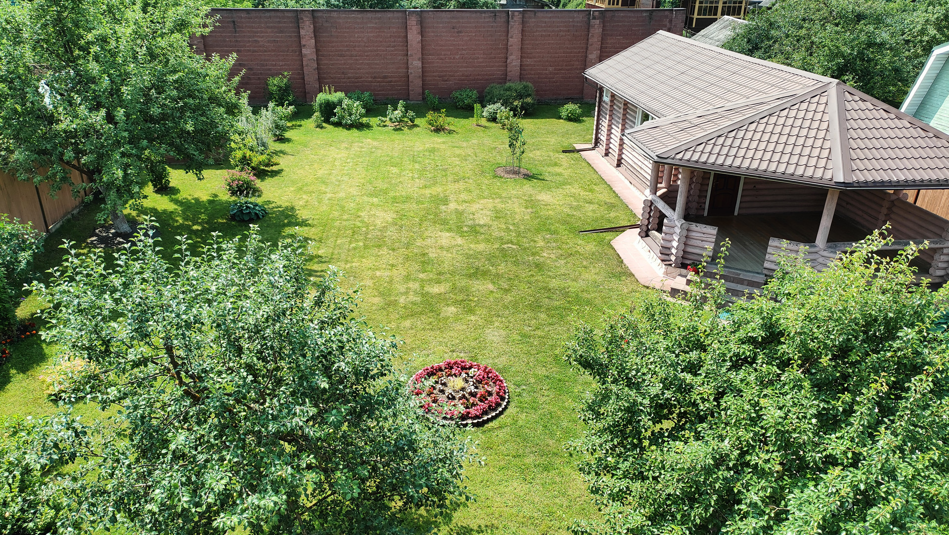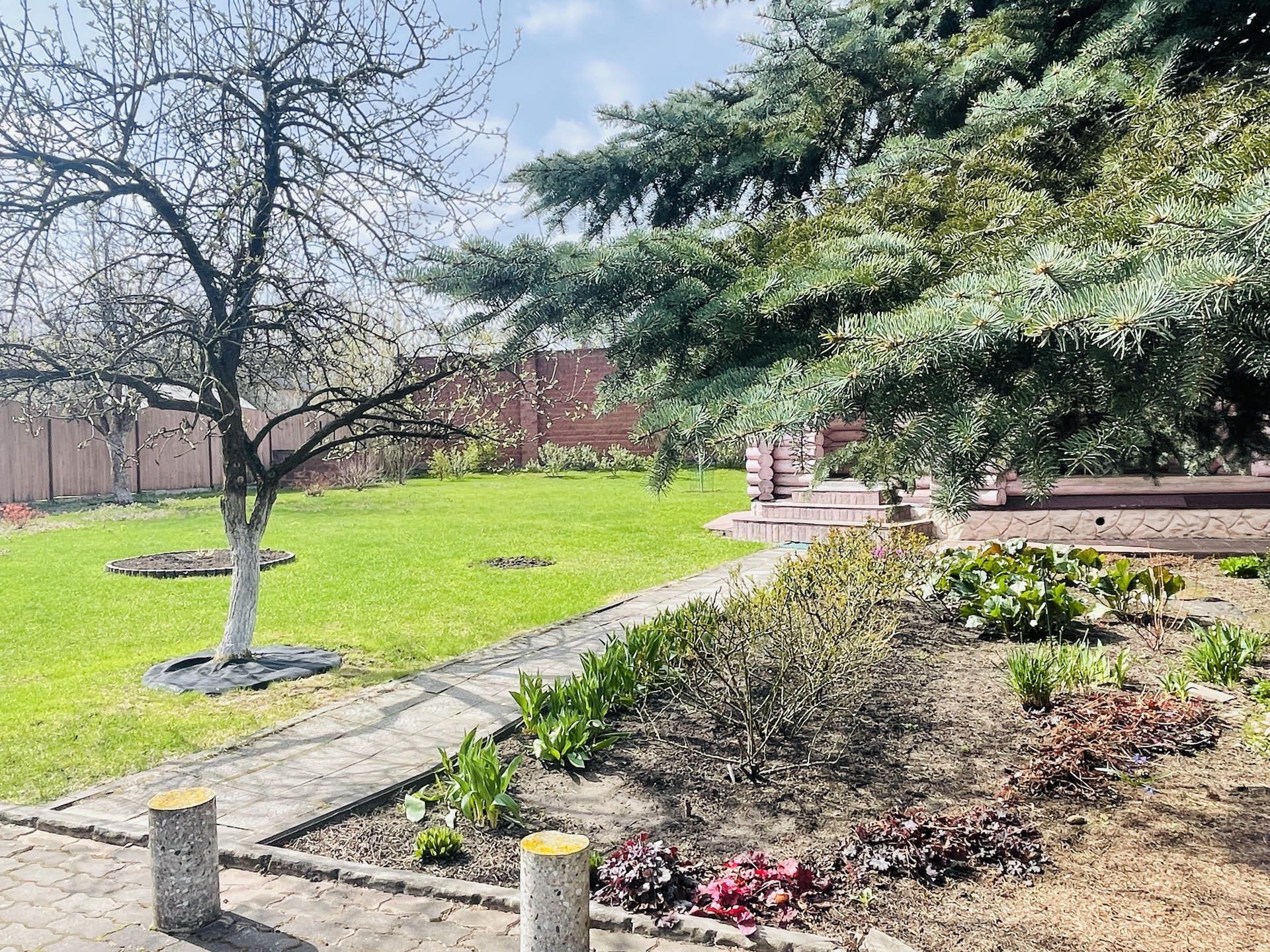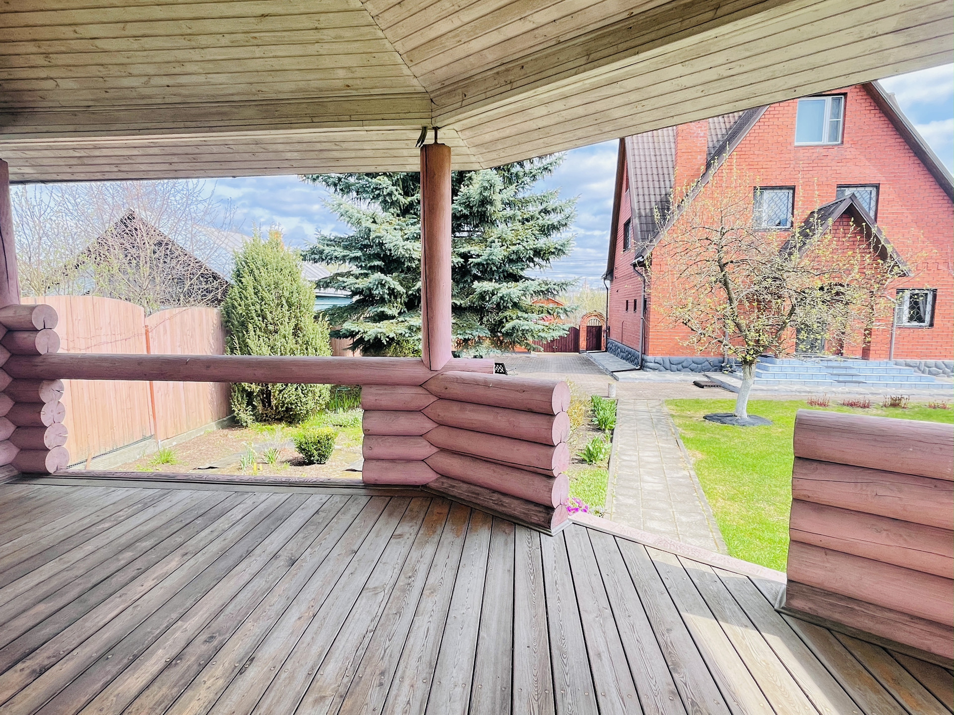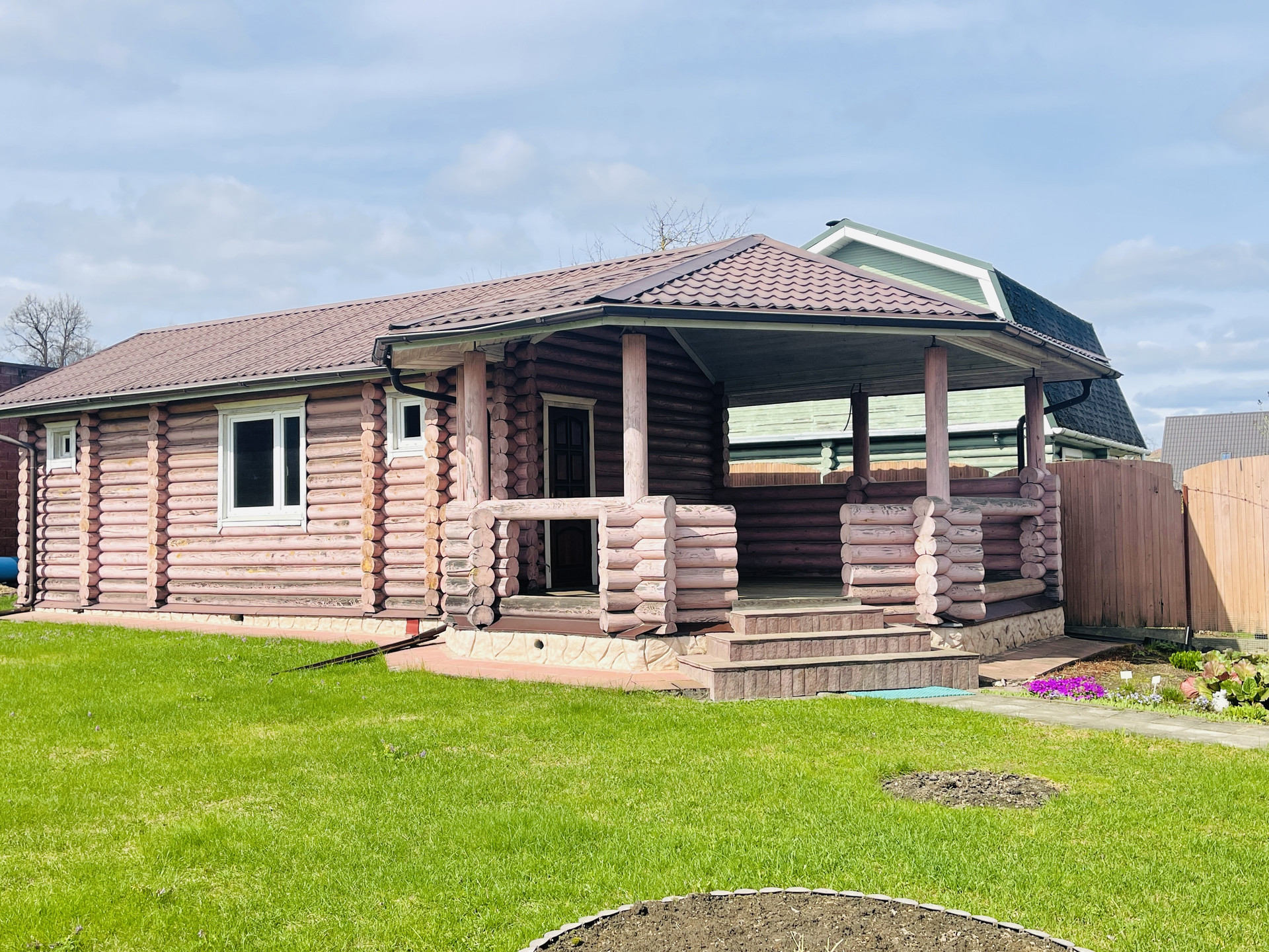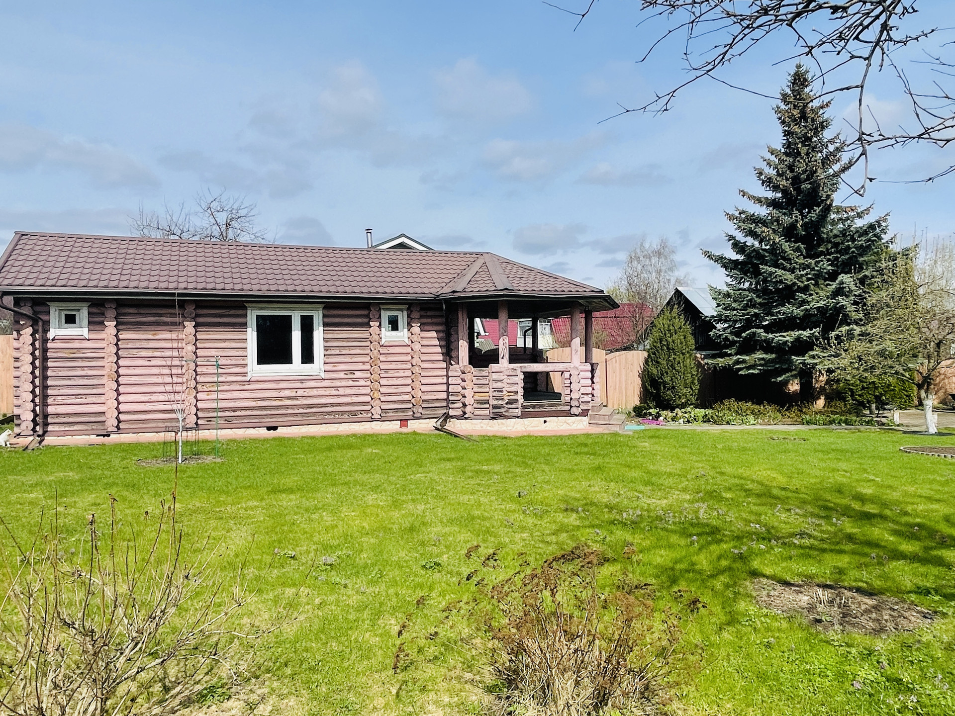 На участке стоит дом из оцилиндрованного бревна, предполагалось разместить там баню. На данный момент дом свободного назначения. Можно сделать баню, можно дополнительный гостевой дом.