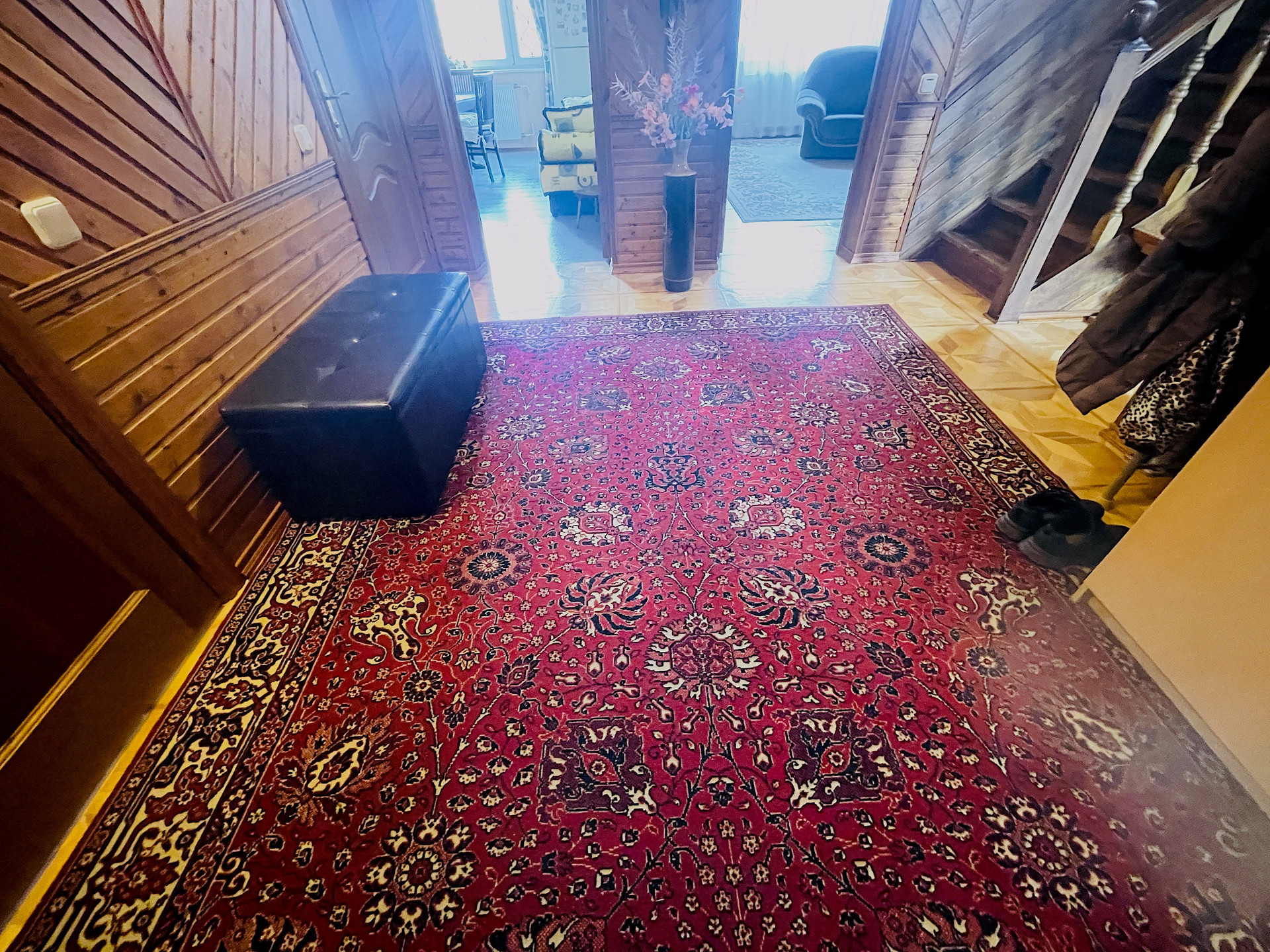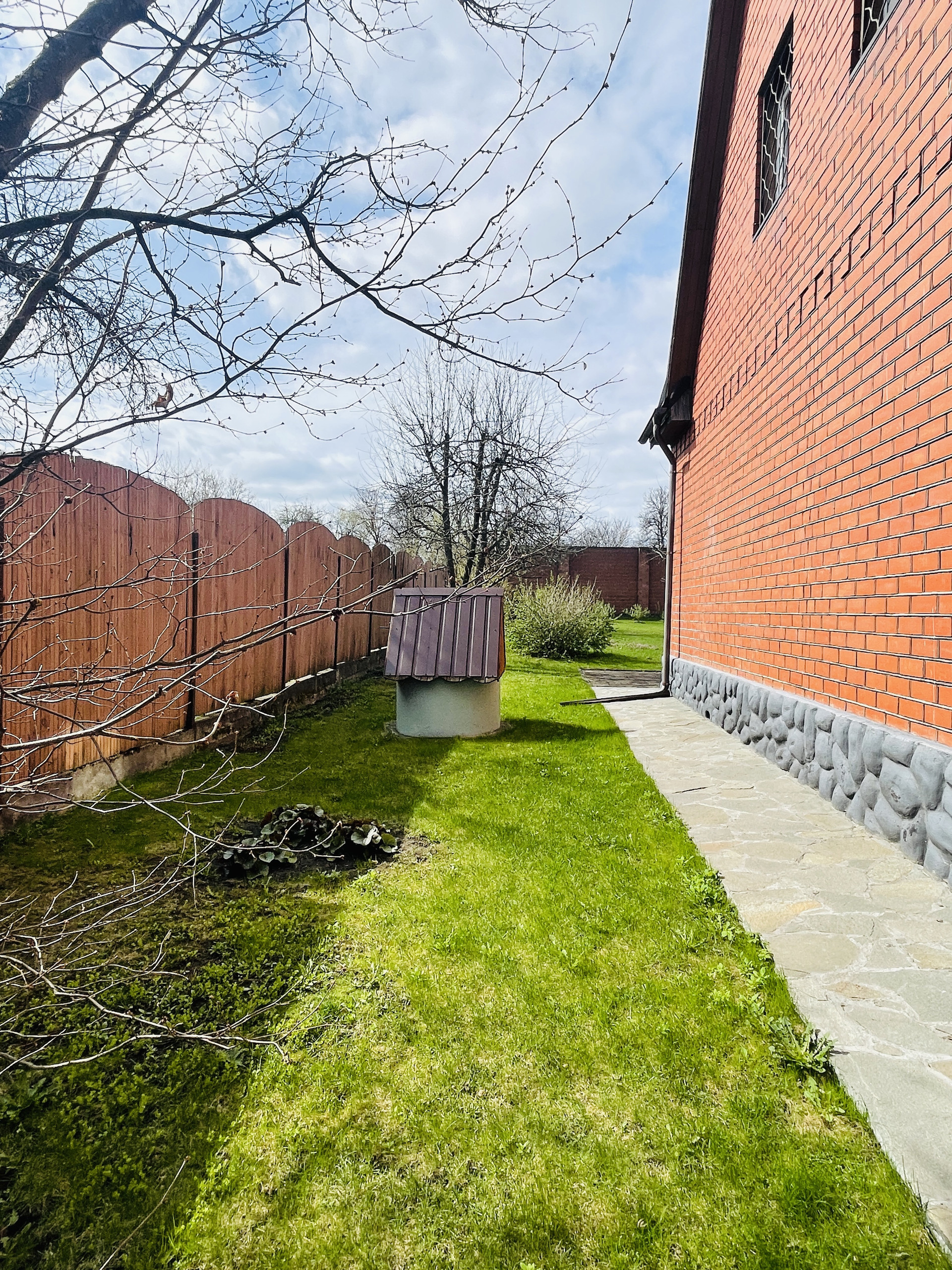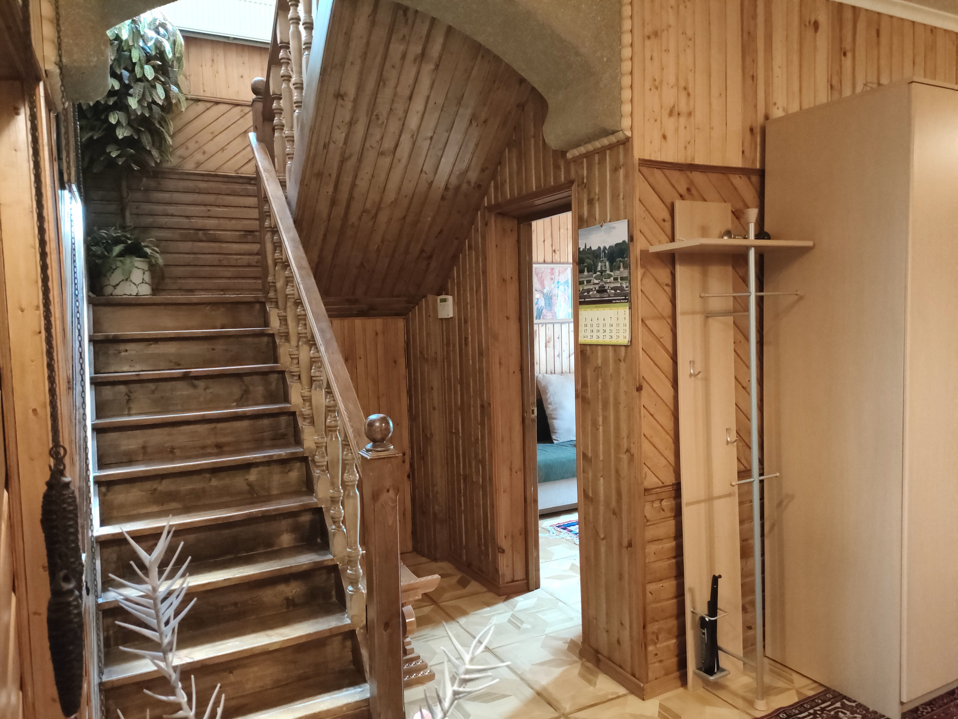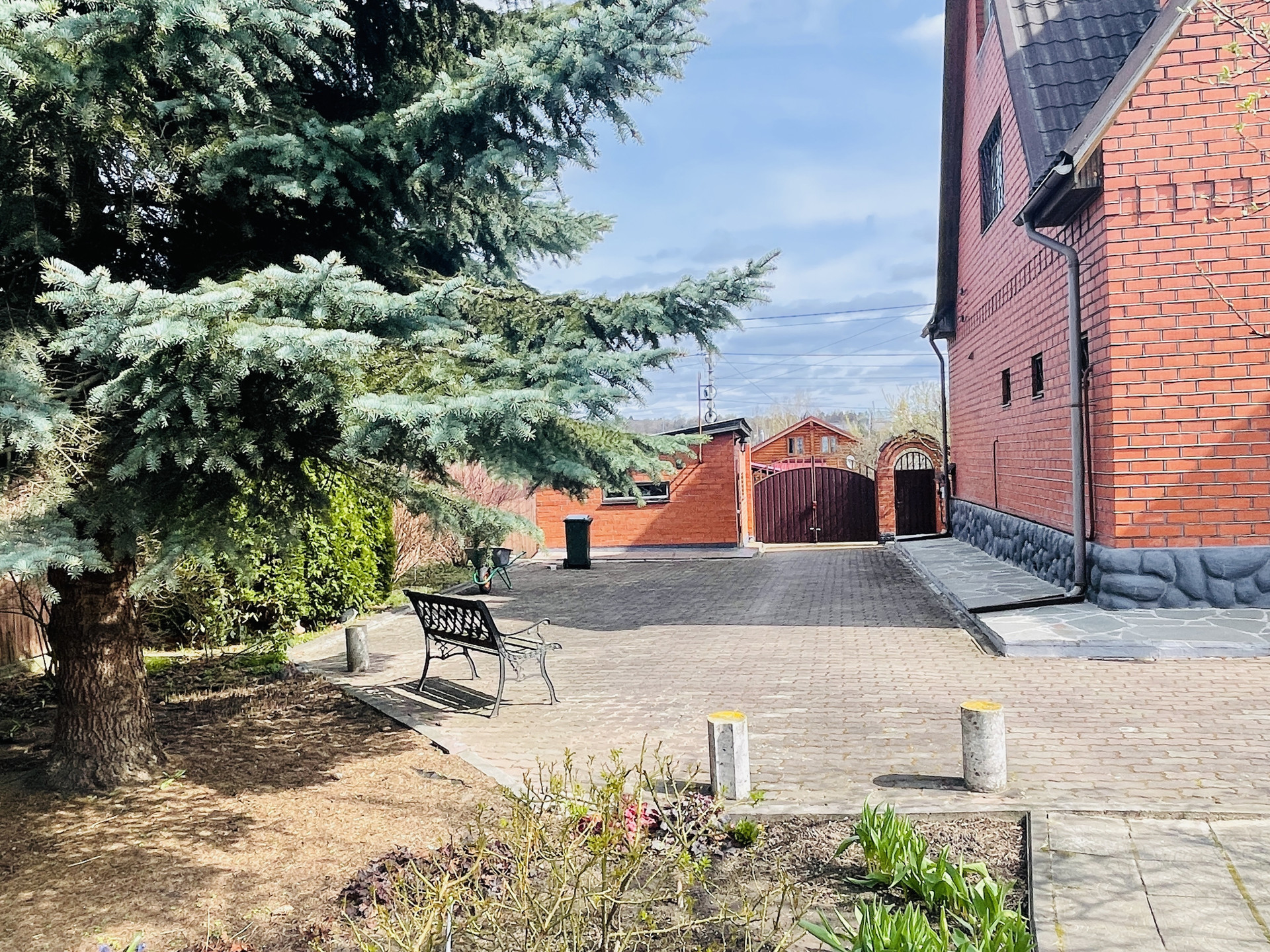 Дом 2 этажа + мансарда, построен из кирпича и бруса, фундамент ленточный и бетонные плиты, перекрытия деревянный брус. Внутренняя отделка – евровагонка.