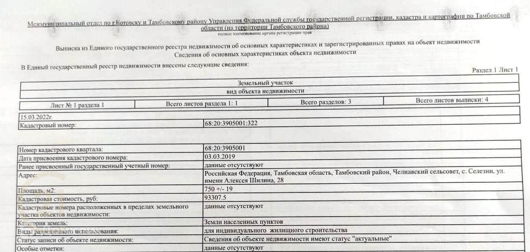 Кадастровый номер 68:20:3905001:322