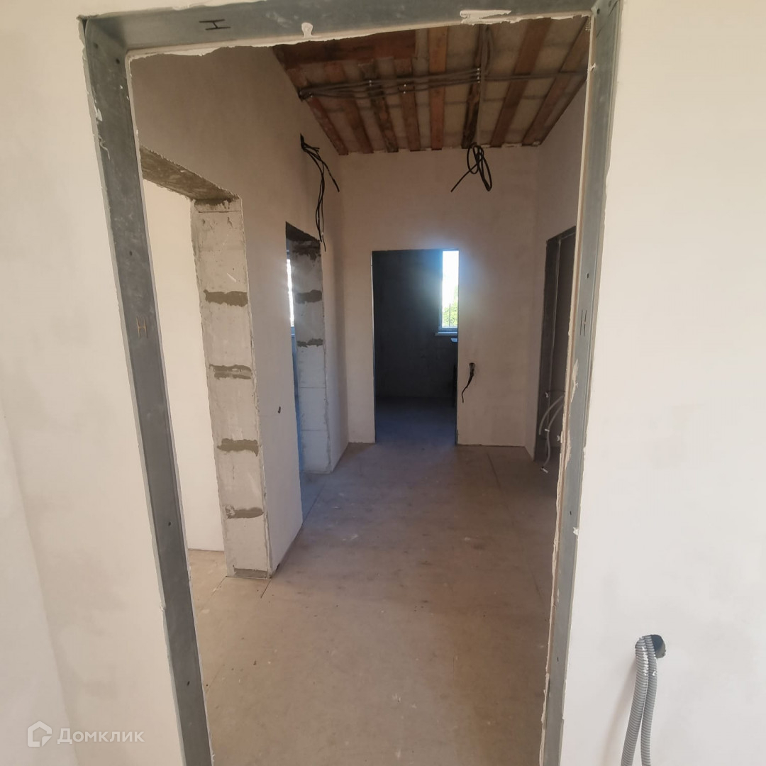 Дом внутри отштукатурен, отшпаклеван под обои , сделано отопление и электрика.