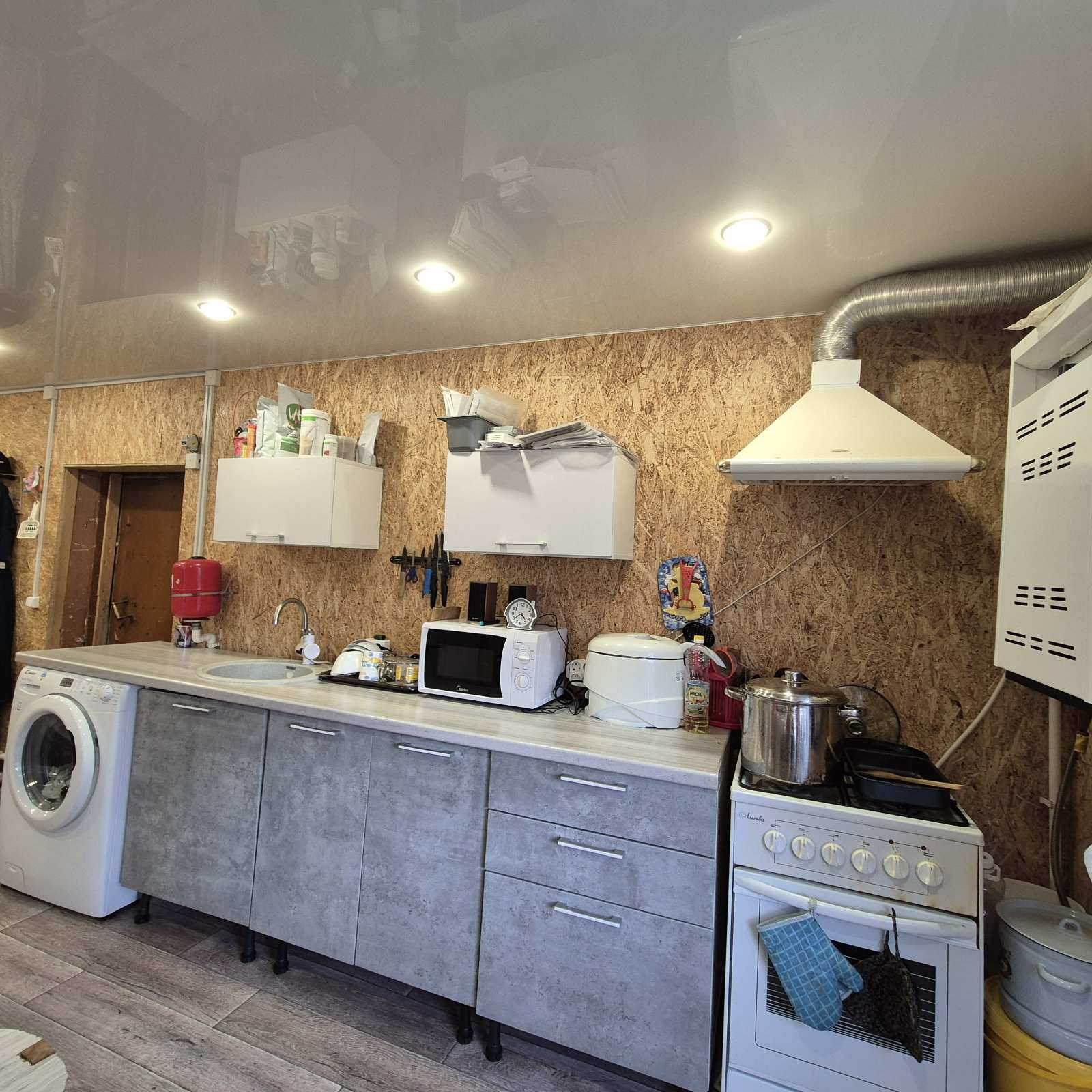 Сделан косметический. ремонт ,установлены пластиковые окна ,натяжные потолки ,газ в доме ,горячая вода ,новый кухонный гарнитур . вытяжка ,газовая плита .