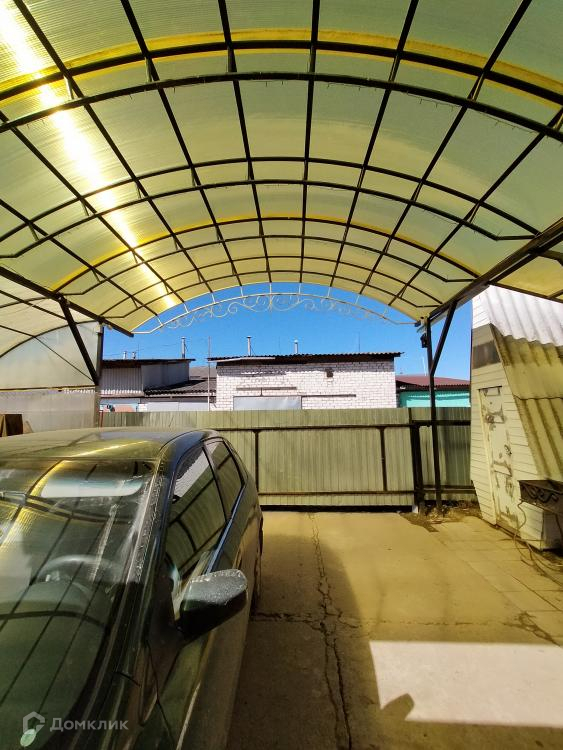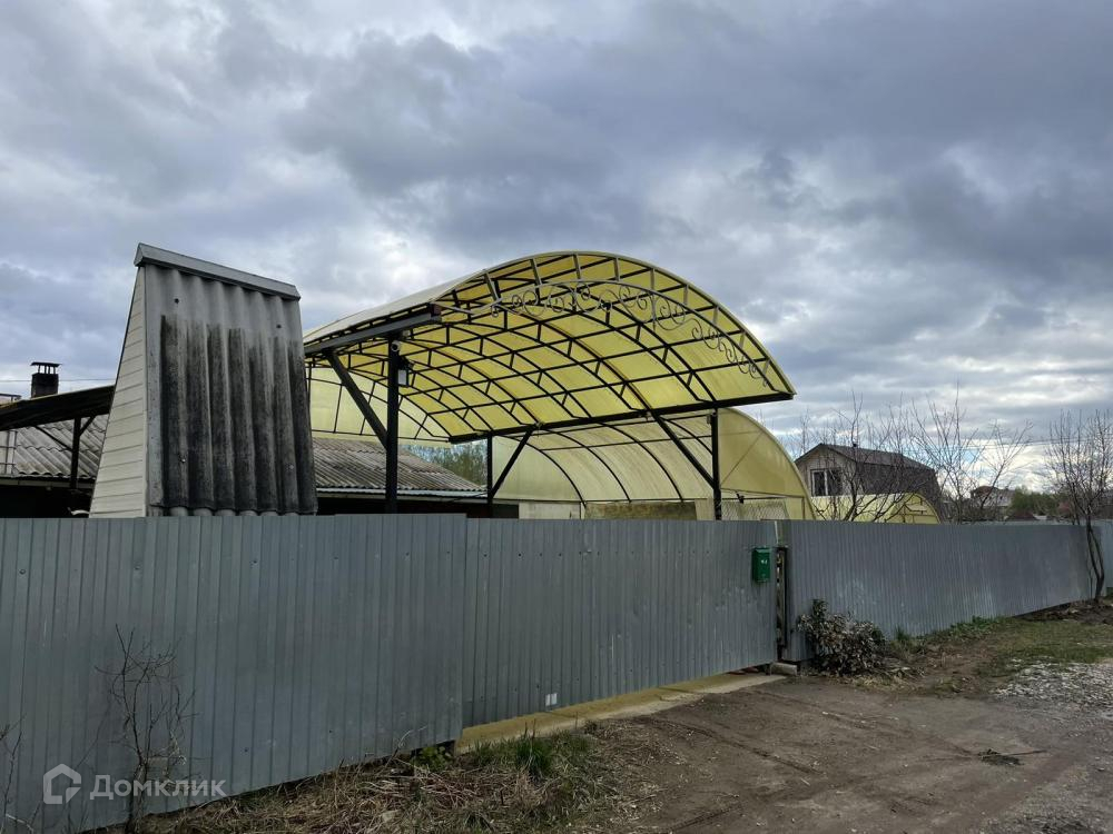 Участок огорожен забором из профлиста, имеются ворота. На входе установлен поликарбонатный навес.