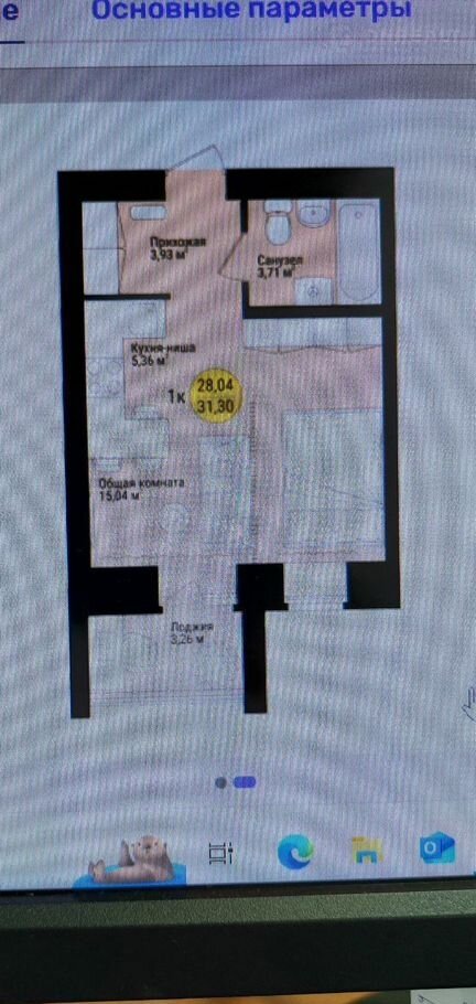 Общая площадь 31.3 м2