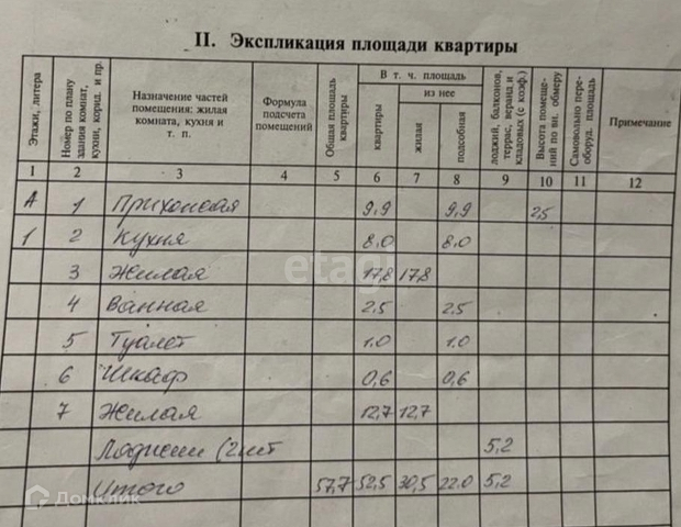 Общая площадь 57.7 м2