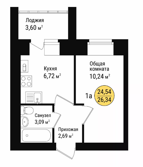 Общая площадь 26.34 м2