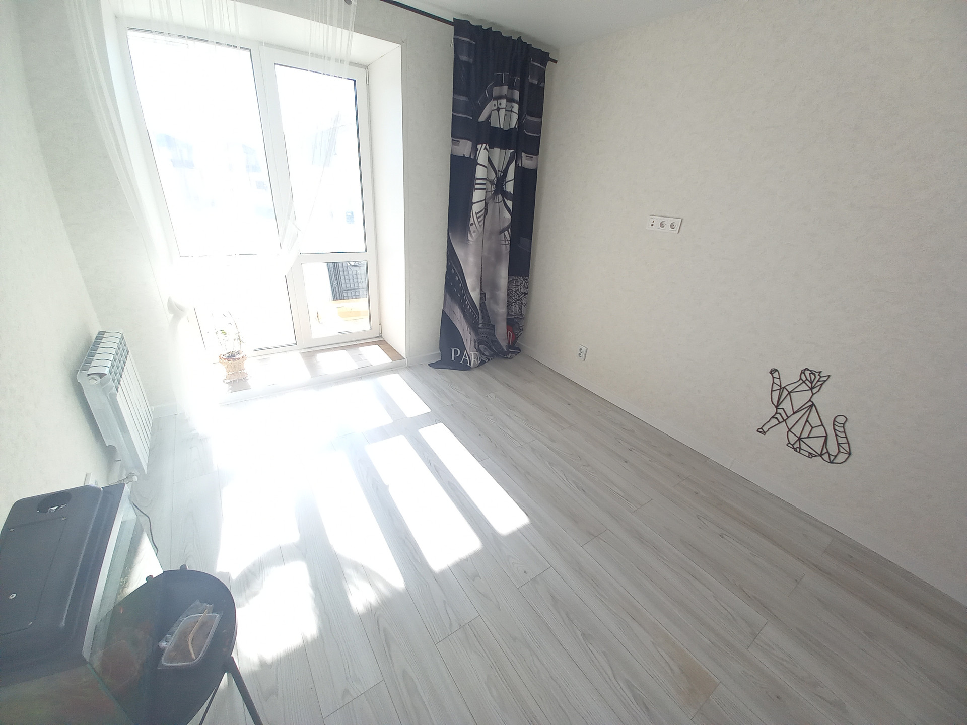 В комнате французское окно.