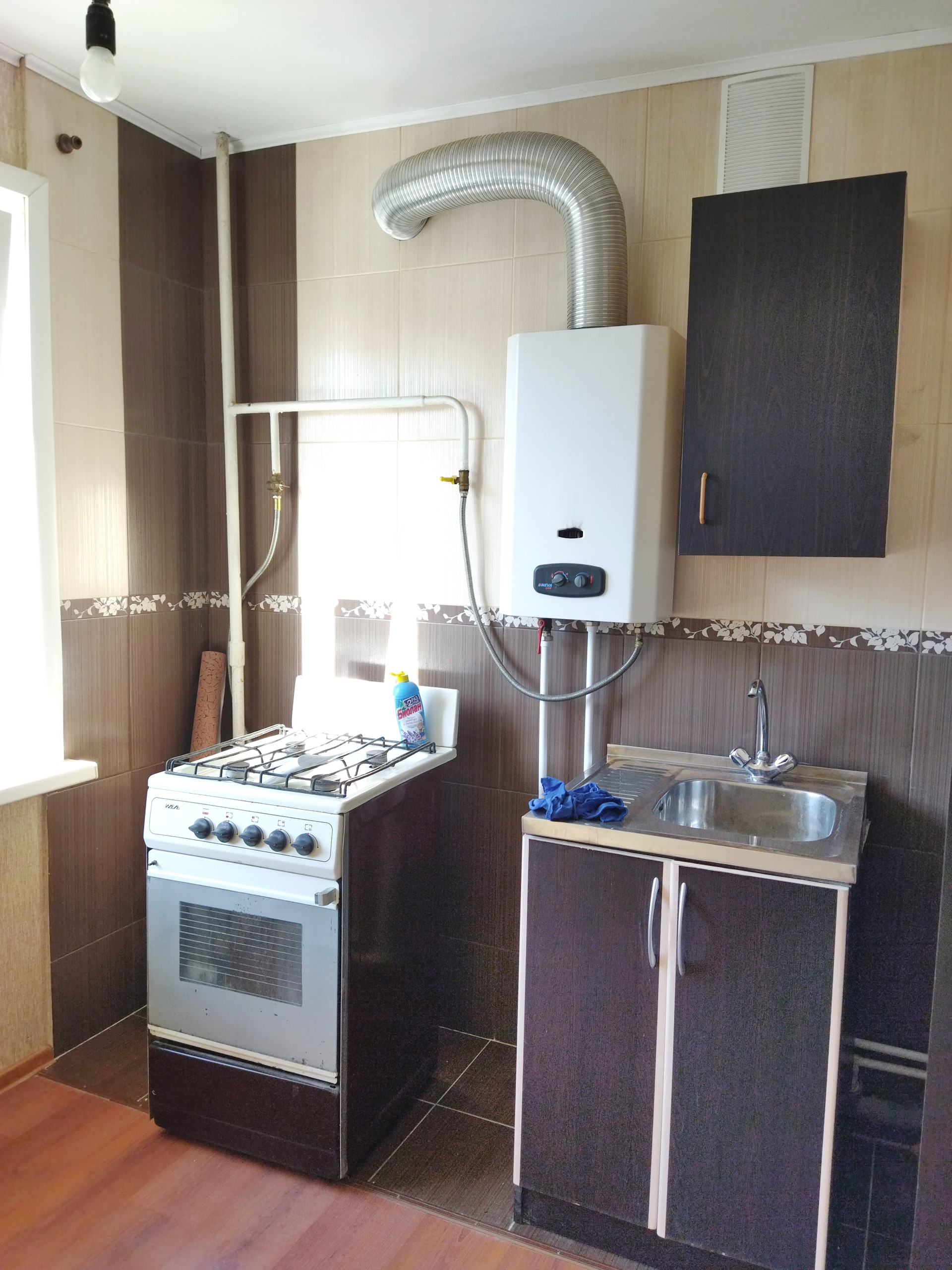 Уютная кухня, две лоджии, центральное отопление (кстати, совсем дорого - в отличие от города – зимой всего 3 тыс.руб – и это за трехкомнатную!).