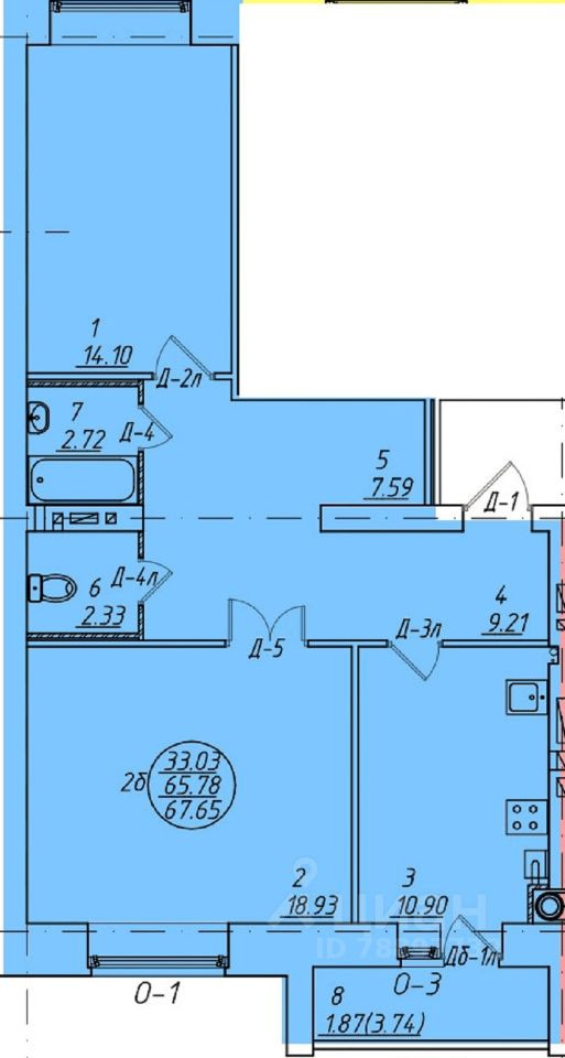 Общая площадь 68 м2
