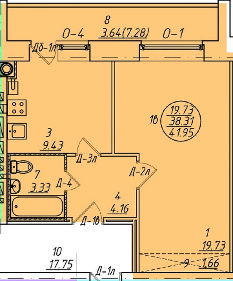 Общая площадь 42 м2