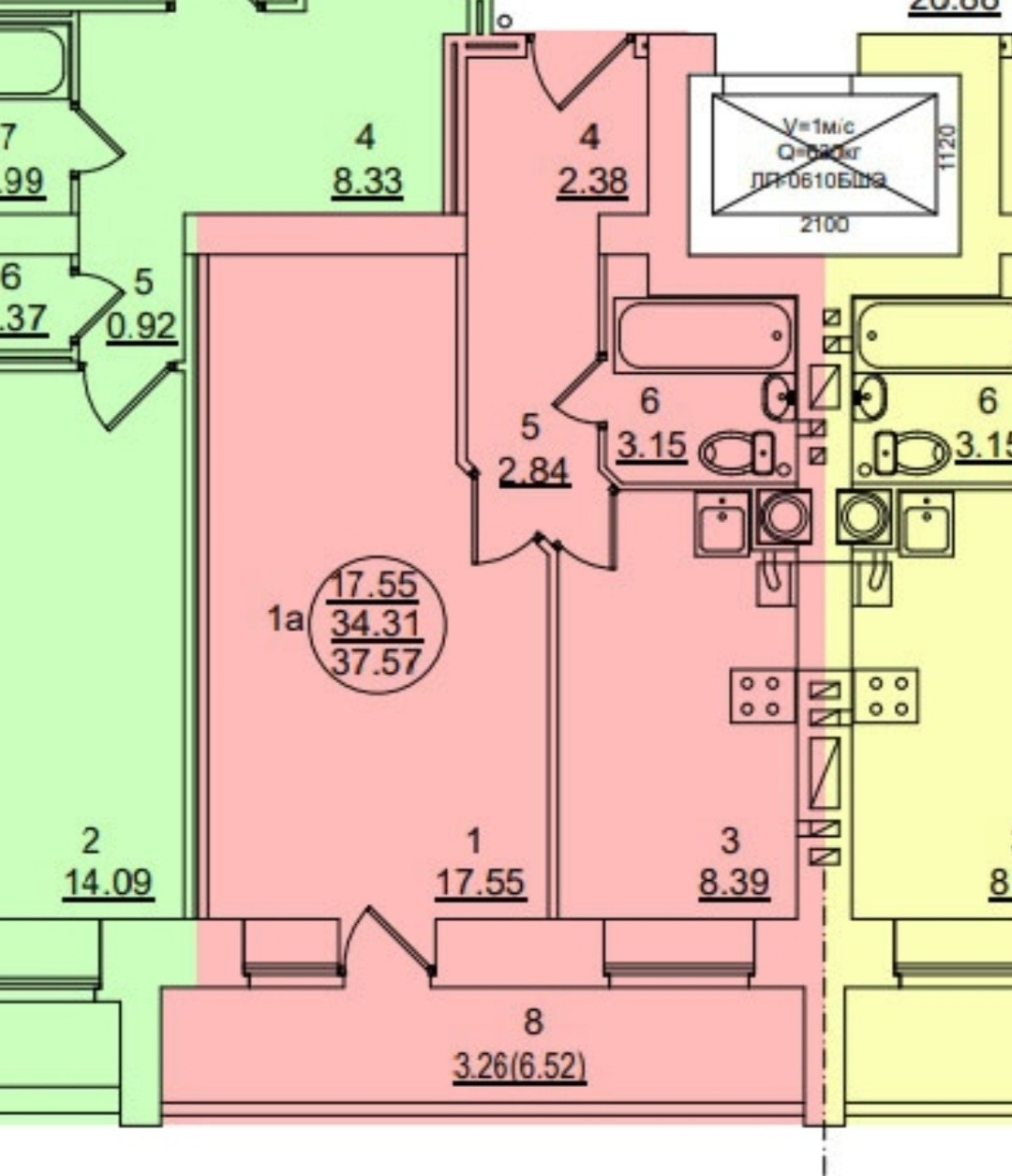Лифт 1 пассажирский и 1 грузовой