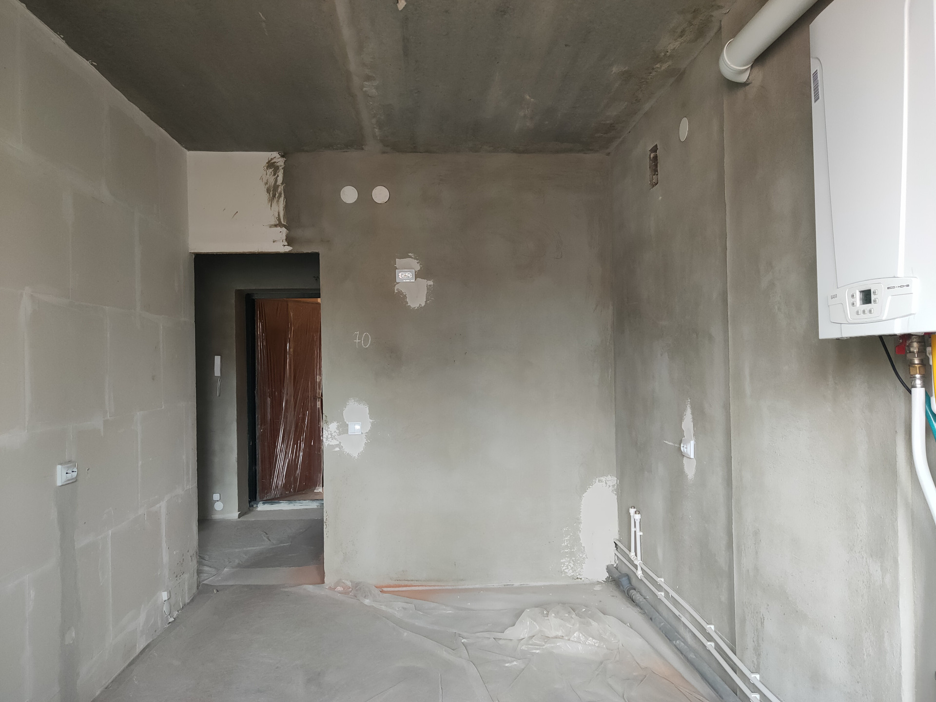 Продается квартира в новом доме, с поквартирным отоплением, квартира с чистовой отделкой: полы - стяжка, стены оштукатурены, пластиковые окна, лоджия 7 метров застеклена, выход на лоджию из кухни, общая площадь с учетом лоджии - 44 кв.м., большая кухня- 10,8 кв.м., комната 16,5 кв.м., панорамный вид из окна, на солнечную сторону совмещенный сан/узел: установлены счетчики на воду, подводка к стоякам, полотенцесушитель, потолки 2,7 м, место под гардеробную, металлическая дверь, котел входит в стоимость. Один собственник, документы готовы. Рассмотрим ипотеку и другие формы расчета. Продажа без комиссии на риэлторские услуги.