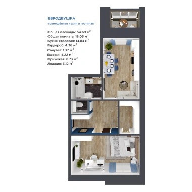 Общая площадь 55 м2