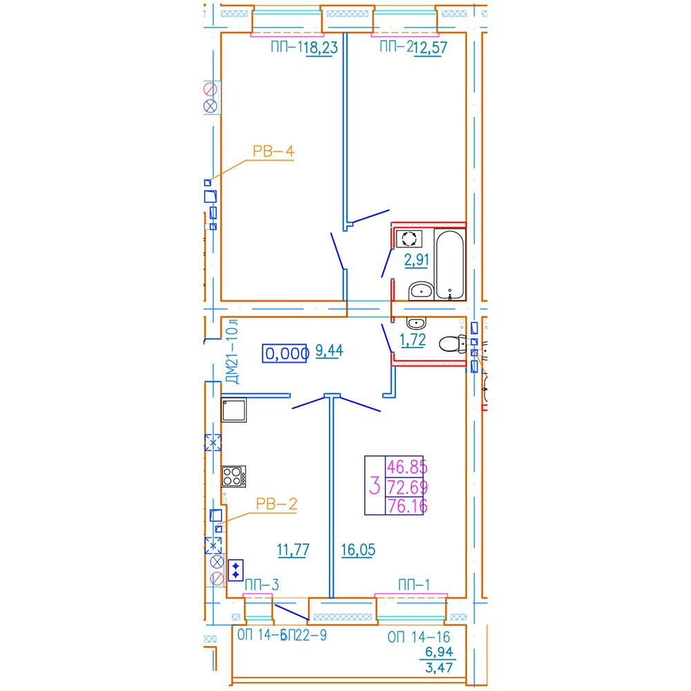 Общая площадь 76 м2