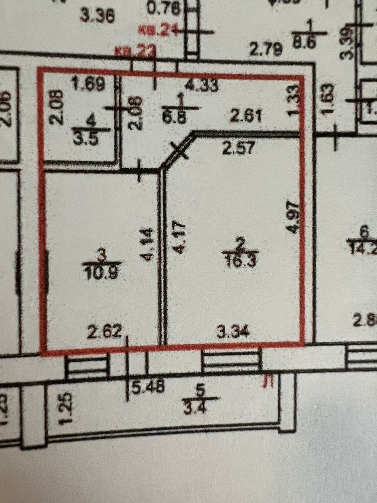 Жилая площадь 16.3 м2