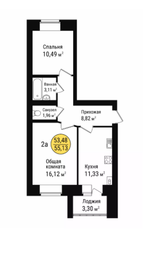 Общая площадь 55 м2