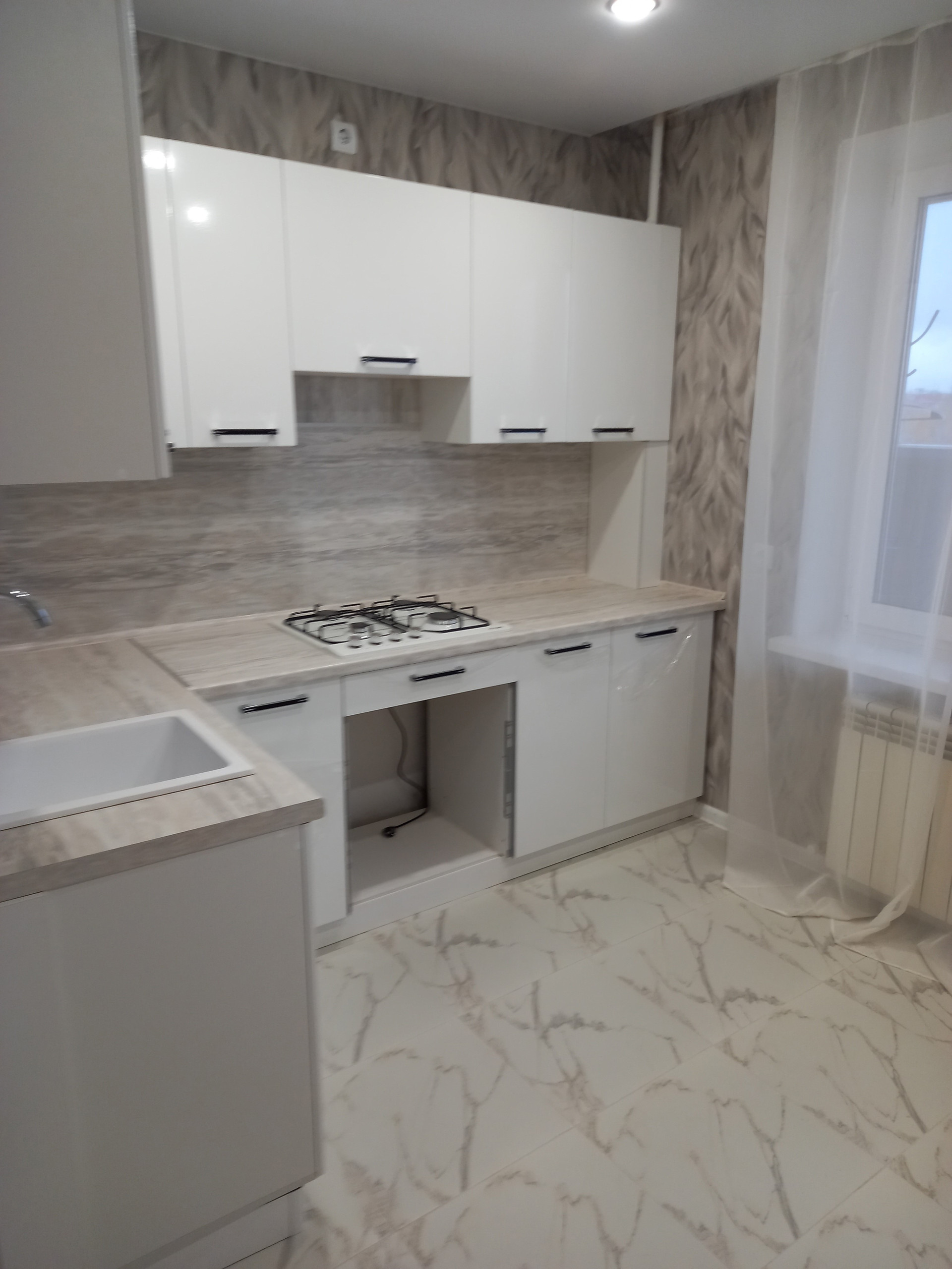 Квартира в новом доме с поквартирным отоплением, не угловая. Дом 2023 года, построен полностью из качественного силикатного кирпича. В квартире выполнен современный ремонт, остается встроенный кухонный гарнитур.