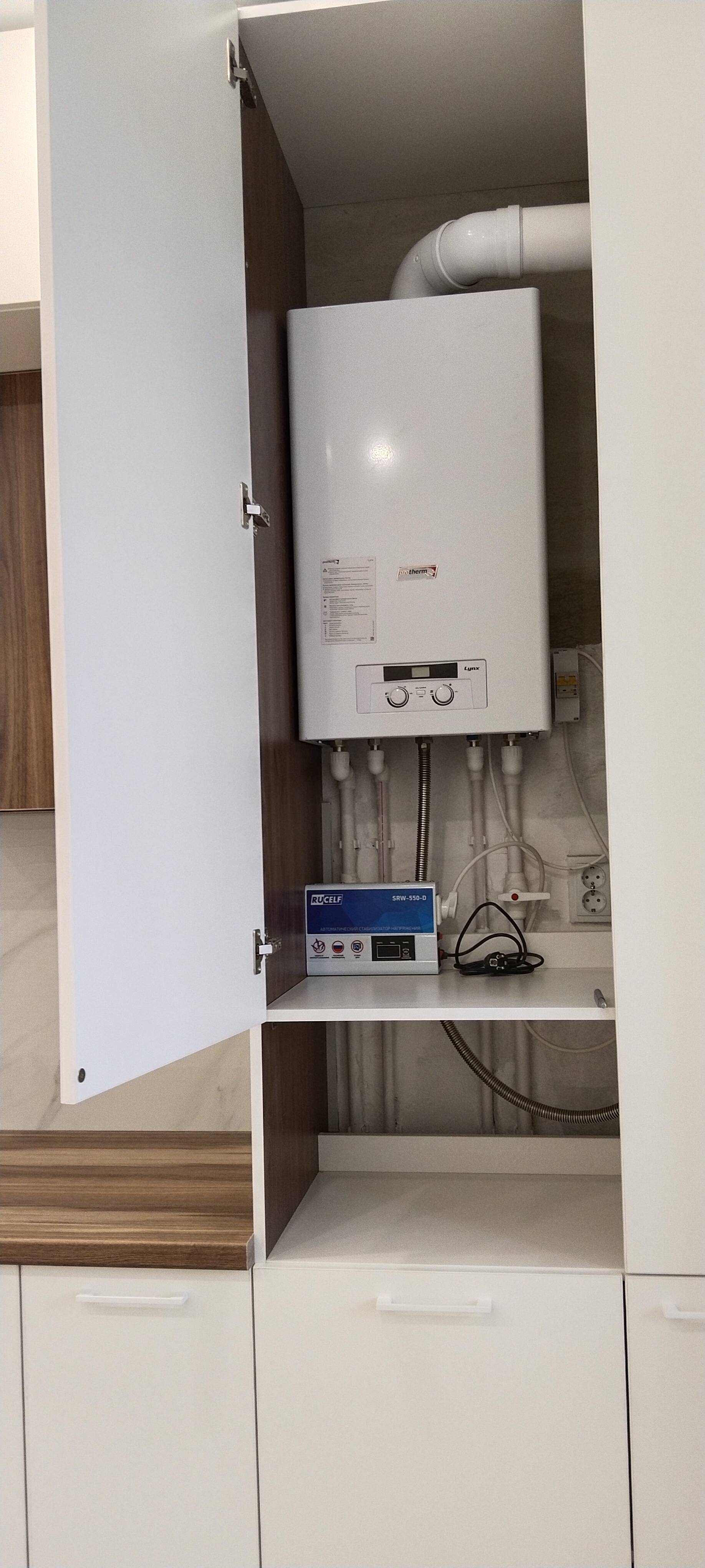 Кухня наполнена множеством ящиков с системой скрытых магнитных доводчиков ( открываются нажатием руки). Верхняя зона шкафов вместительна, но не утяжеляет визуально, благодаря светлому цвету фасадов. Раковина из камня- практичный и эффектный материал, неприхотлив в уборке.