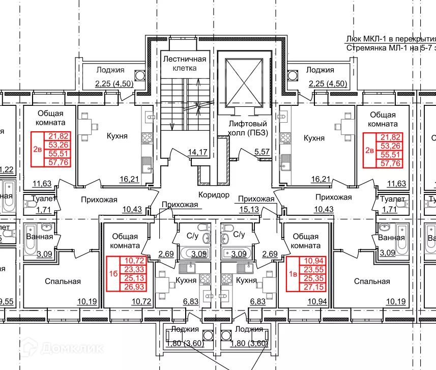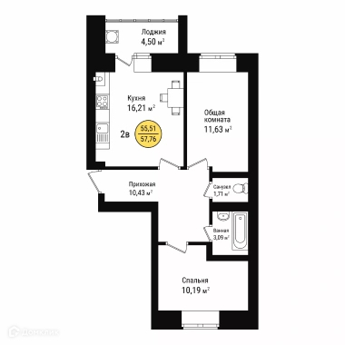 Общая площадь 57.7 м2