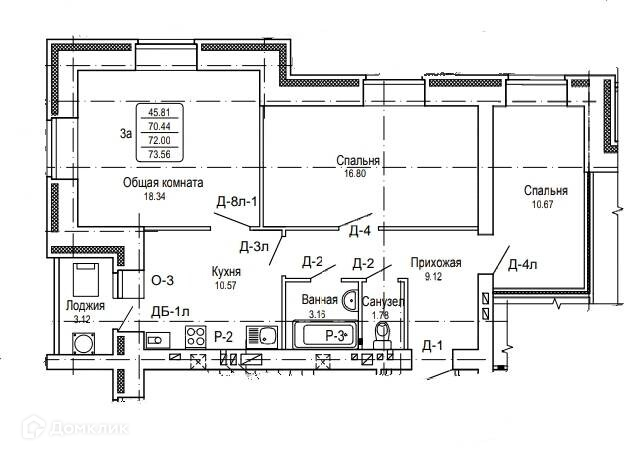 Общая площадь 73 м2