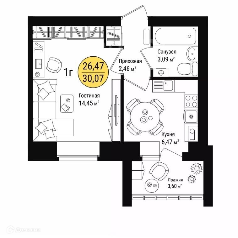 Общая площадь 30.1 м2
