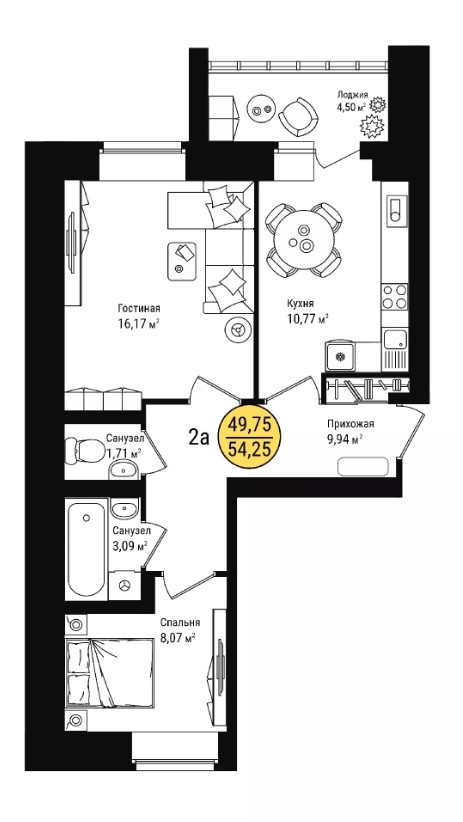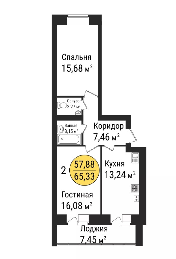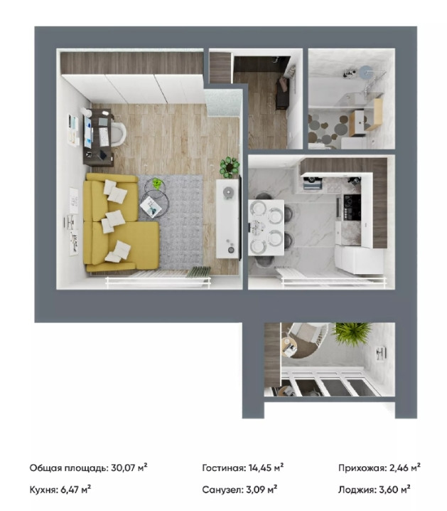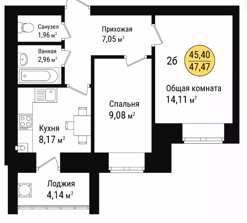 Общая площадь 45 м2